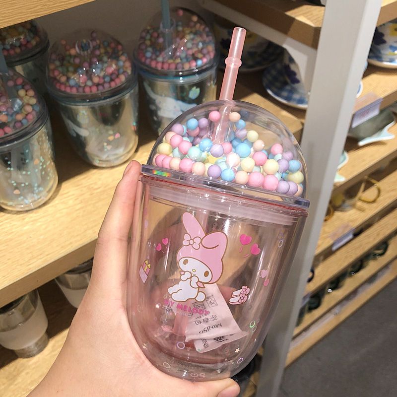Miniso Mingyin Youpin Sanrio Outdoor Accompanoy Cup Cup Yugou Dog Melatti Пластиковая соломенная вода чашка 435 мл