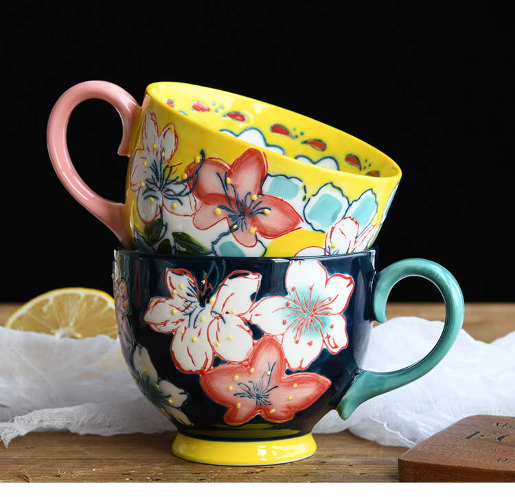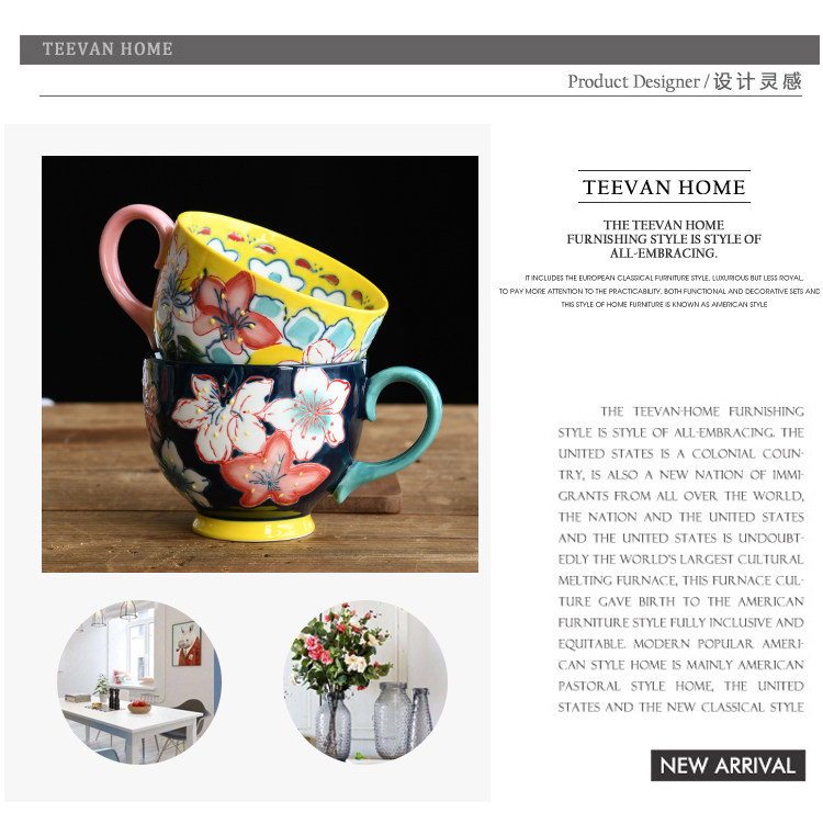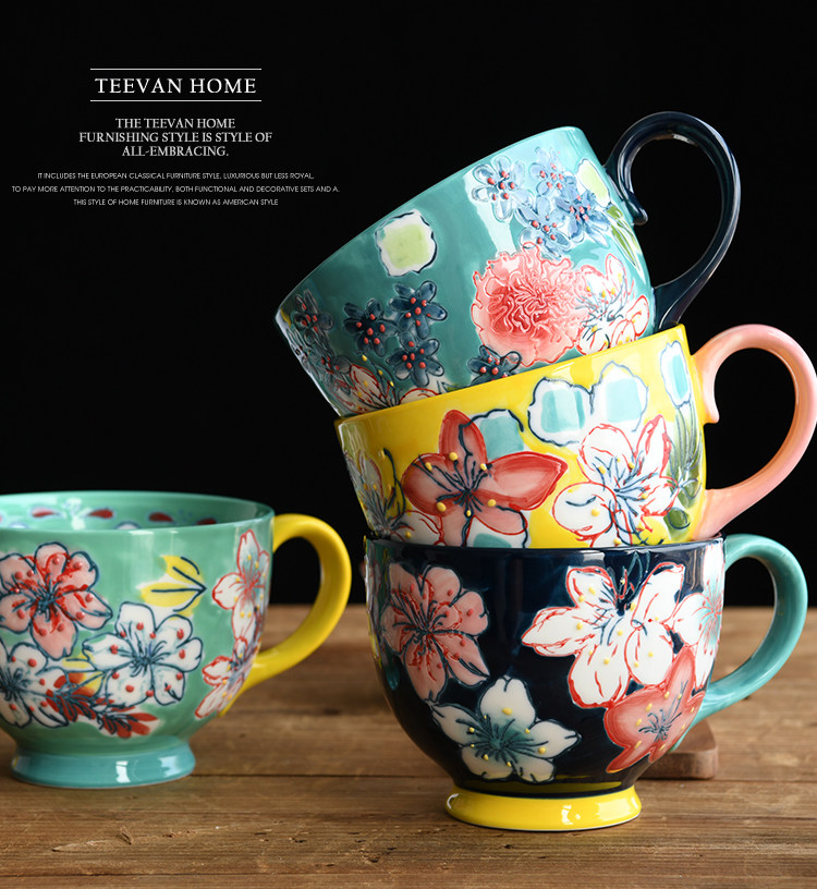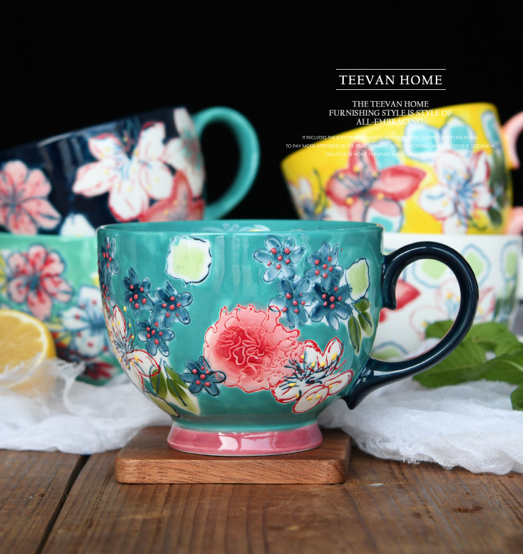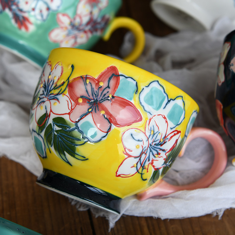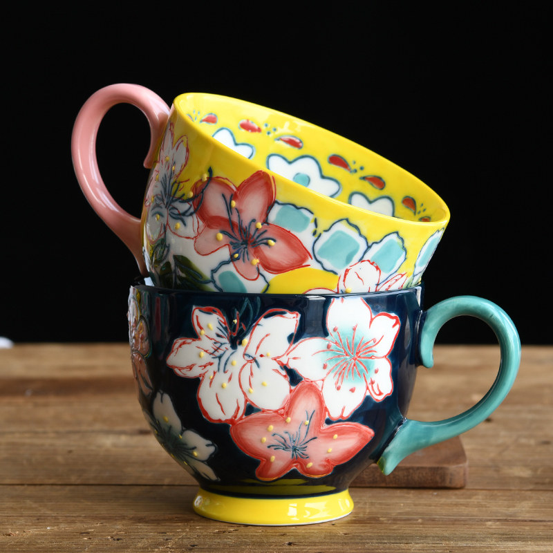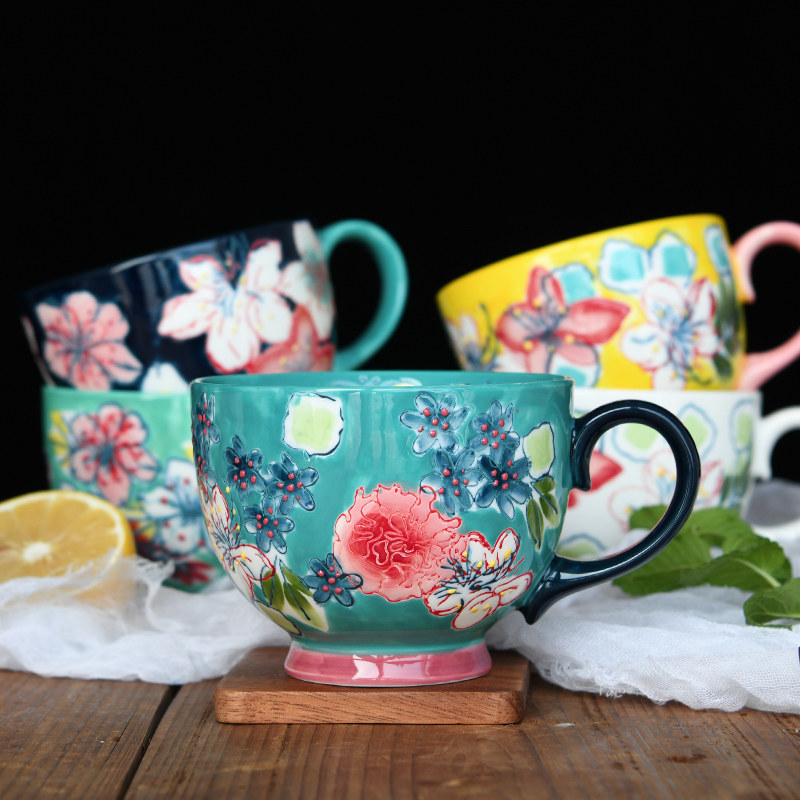 Креативный керамический чайный сервиз, десертная вместительная и большая чайная чашка, ручная роспись, домашний декор