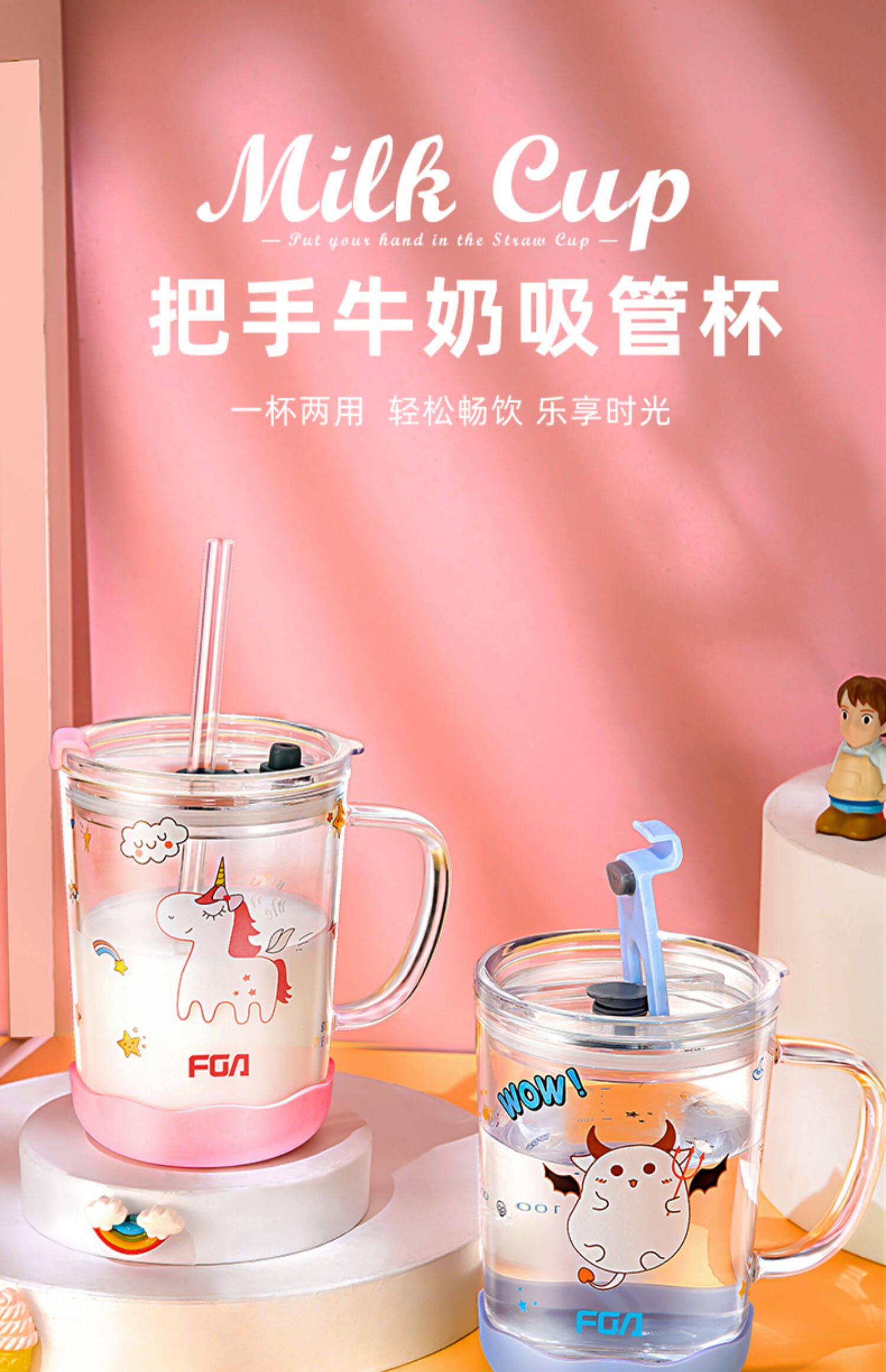 Fuguang FGA Детская молочная чашка привод для питья молоко порошковая микроволновая печь с подогревом стекло розовый молочный порошок соломенная чашка