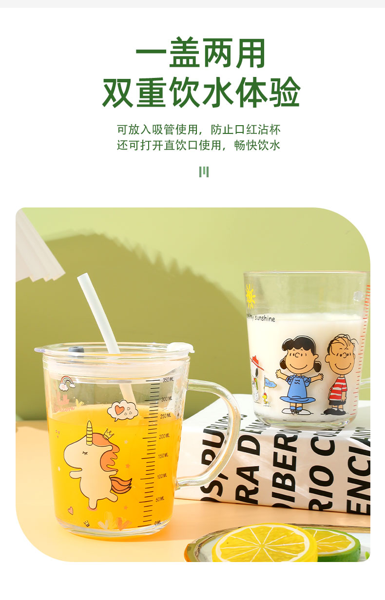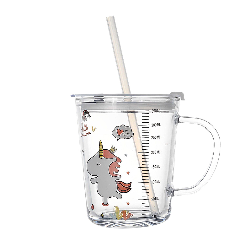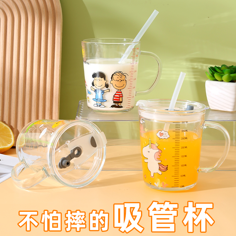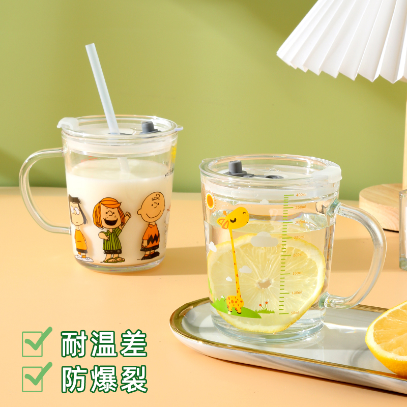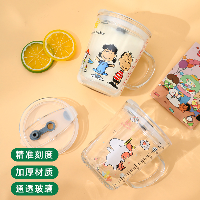 Стеклянный детский милый стакан для домашнего использования со стаканом, кофейная чайная чашка