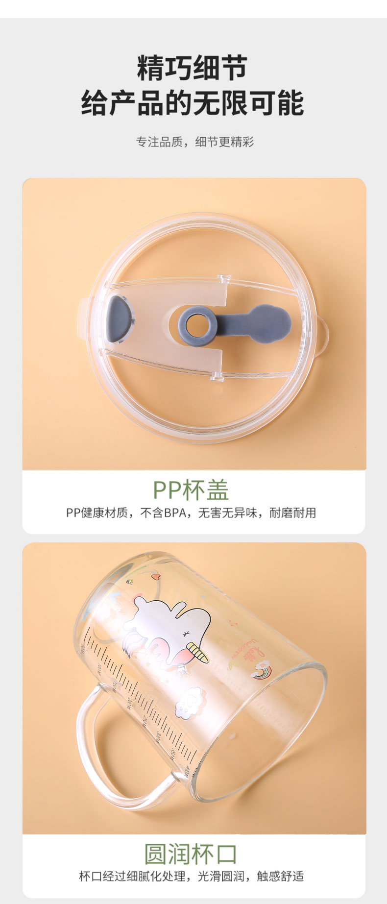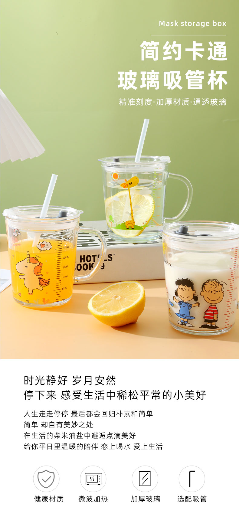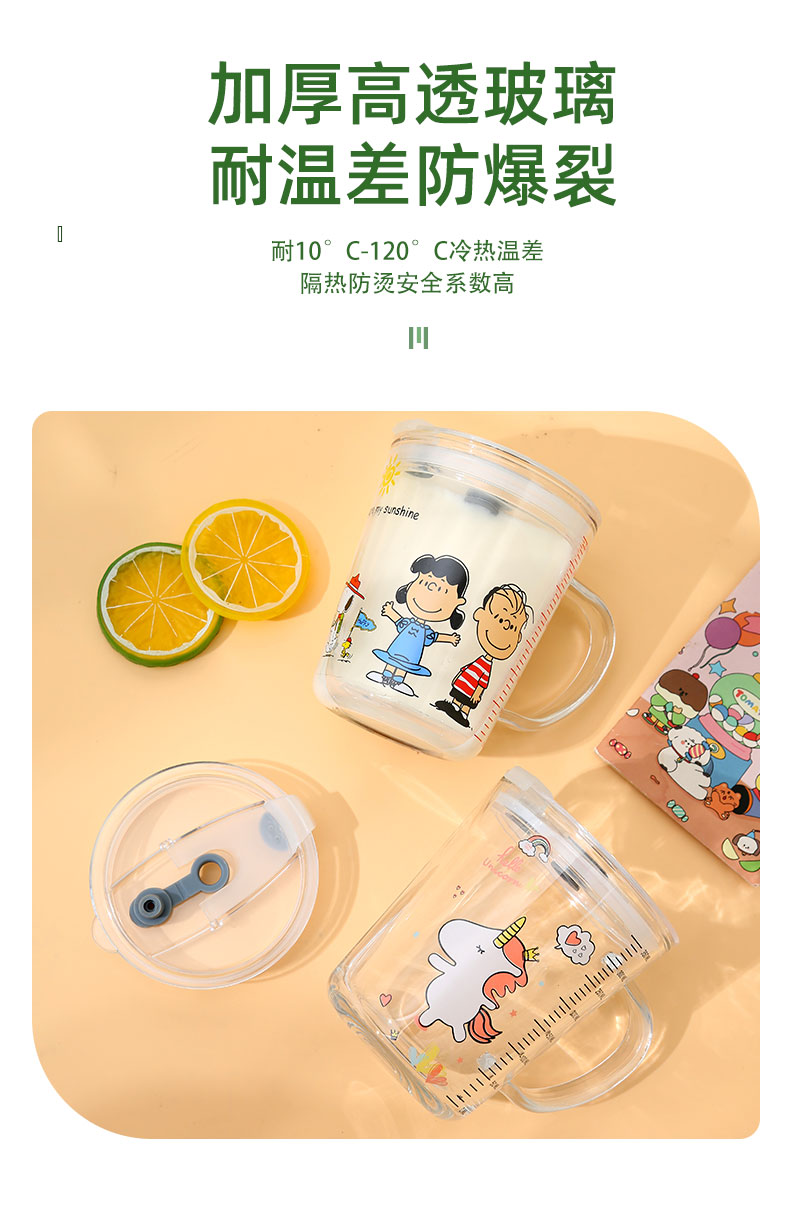 Стеклянный детский милый стакан для домашнего использования со стаканом, кофейная чайная чашка
