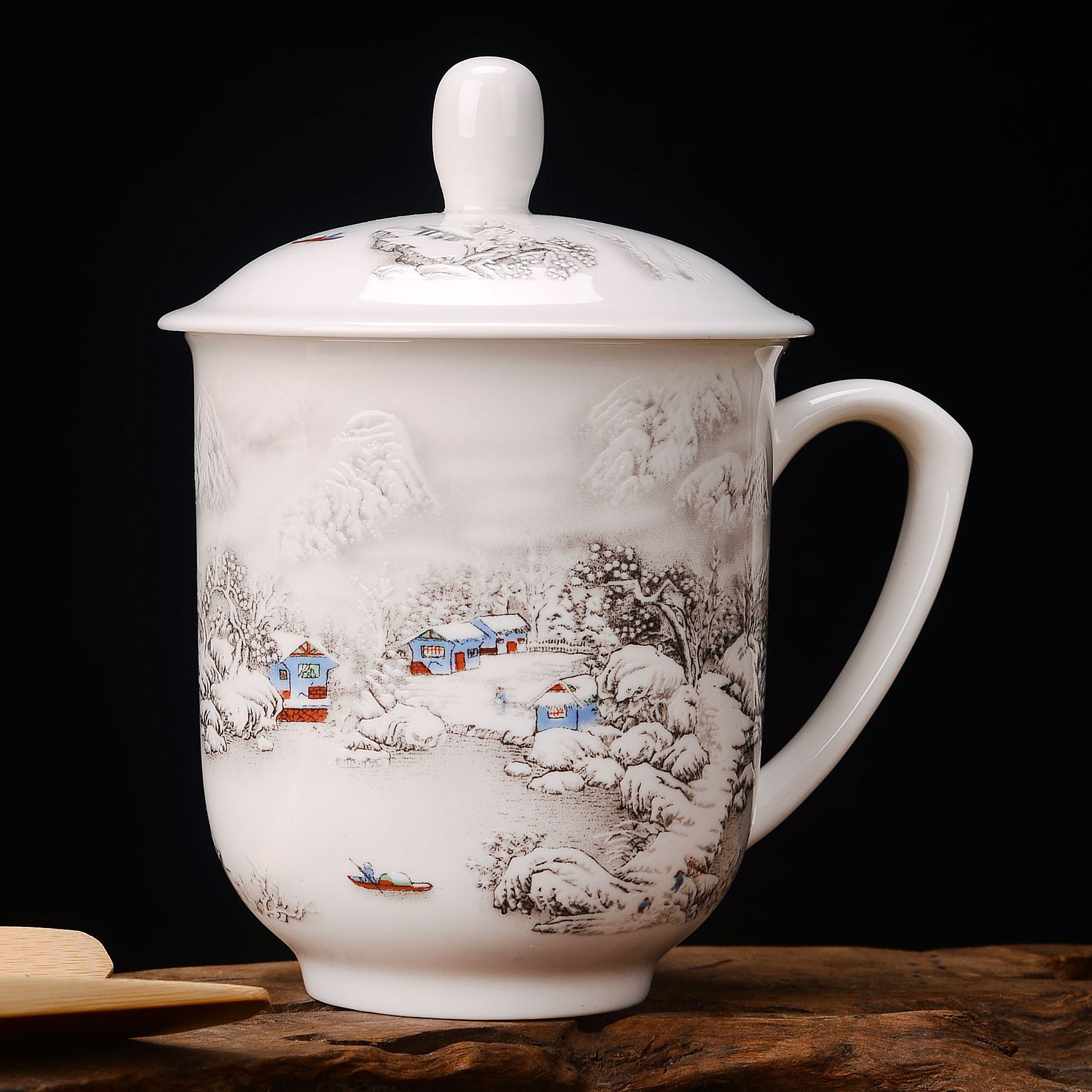 Керамическая чашка чашка джингджэнь костяной фарфоровый фарфоровый синий и белый фарфоровый ремень мебель конференции