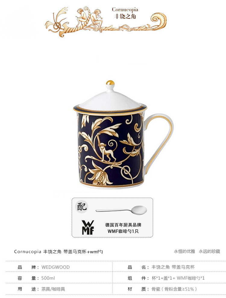 Wedgwood Рогнукопия Рич Хорн капрал, покрывающая большую чайную чашку+WMF Spoon British Production