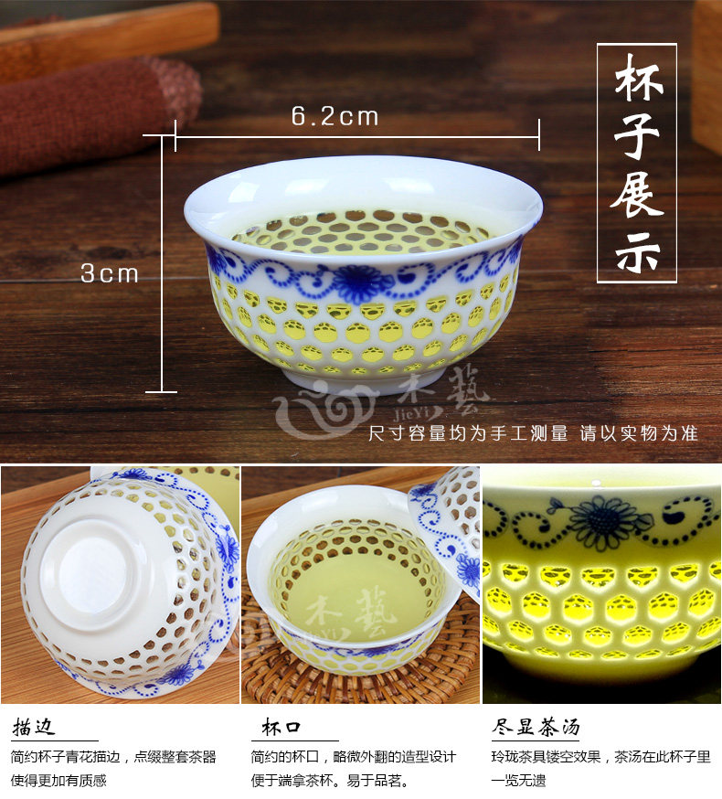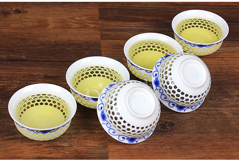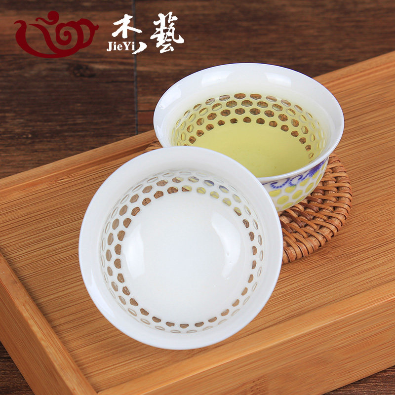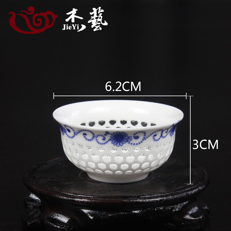 Сине -белый фарфоровый керамический сотовой сот в пустоте линглонг кунгфу чай чашка маленькая чашка магистра
