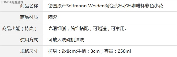 Оригинальная импортная сельтманн Вейден красочная маленькая цветочная керамика чашка макера чашка питьевой воды 270 мл