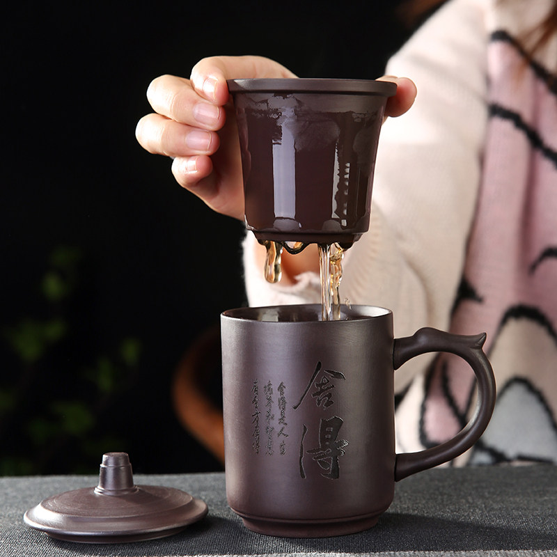 Фиолетовая песчаная крышка с фильтрацией внутренней линейки Марк Кубка Офисная чашка водяной чашки пара кофейная чашка чайная чашка личная чашка