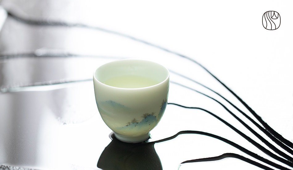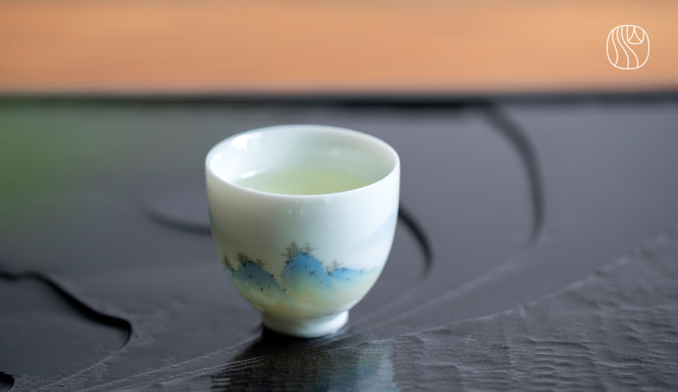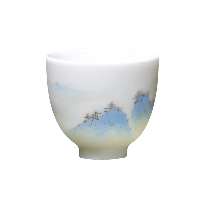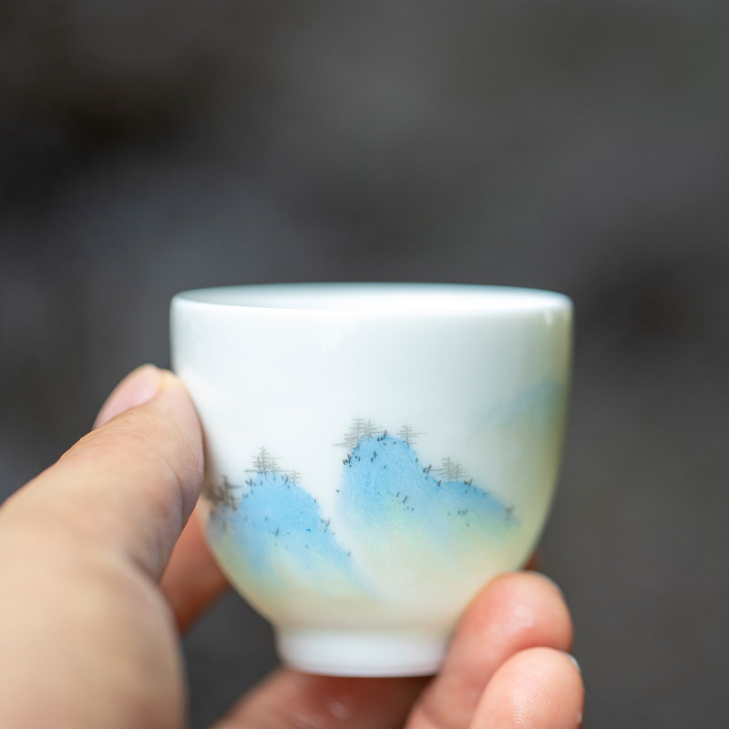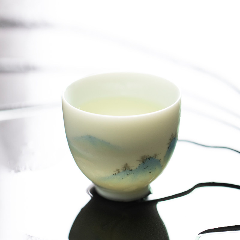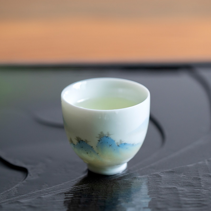 Горы и реки, Qingshan Pinxu Cup Cup Tie -Painted Tea Cup Qianli Jiangshan Tuqing Зеленые ландшафтные горы и реки Керамические чайные ткань