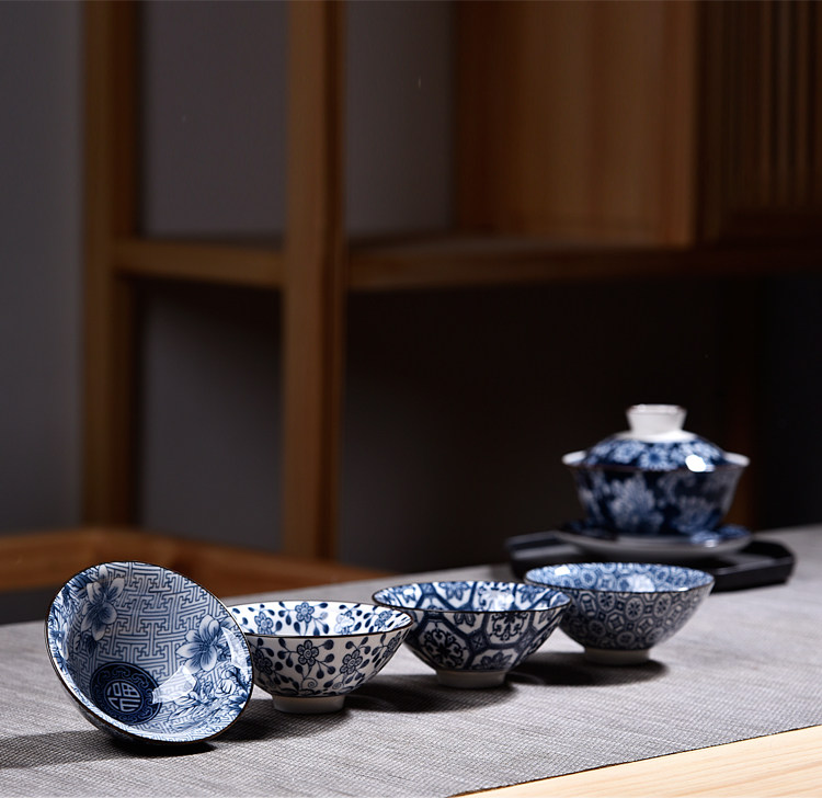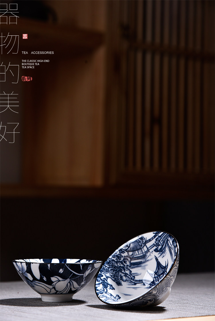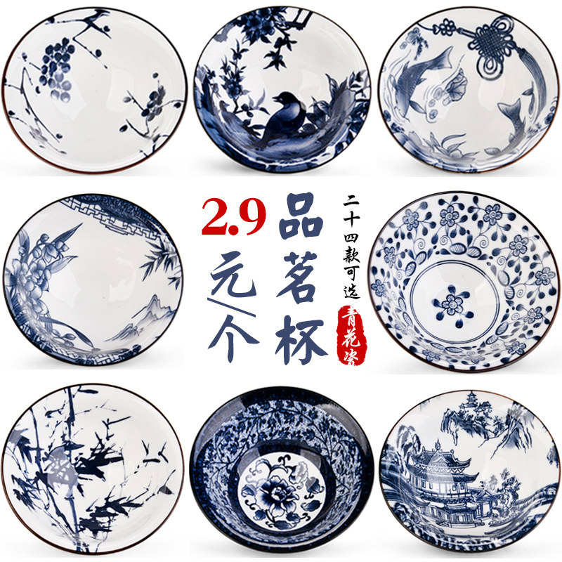 Керамическая чайная чашка, сине-белый чайный сервиз, ручная роспись