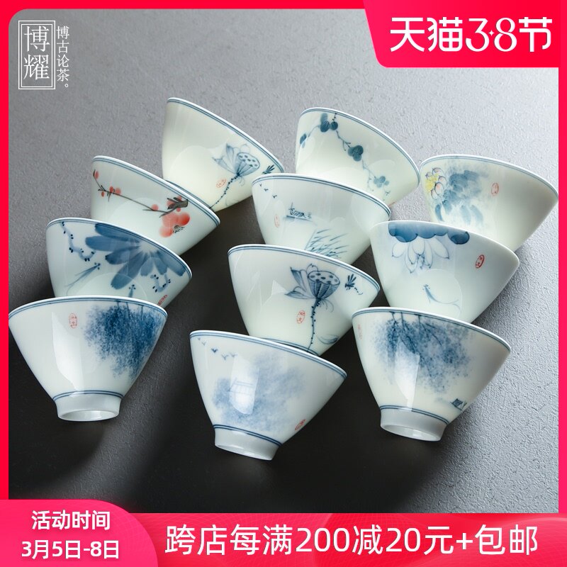 博耀 Сине-белый чайный сервиз, керамическая чайная чашка, DIY, ручная роспись