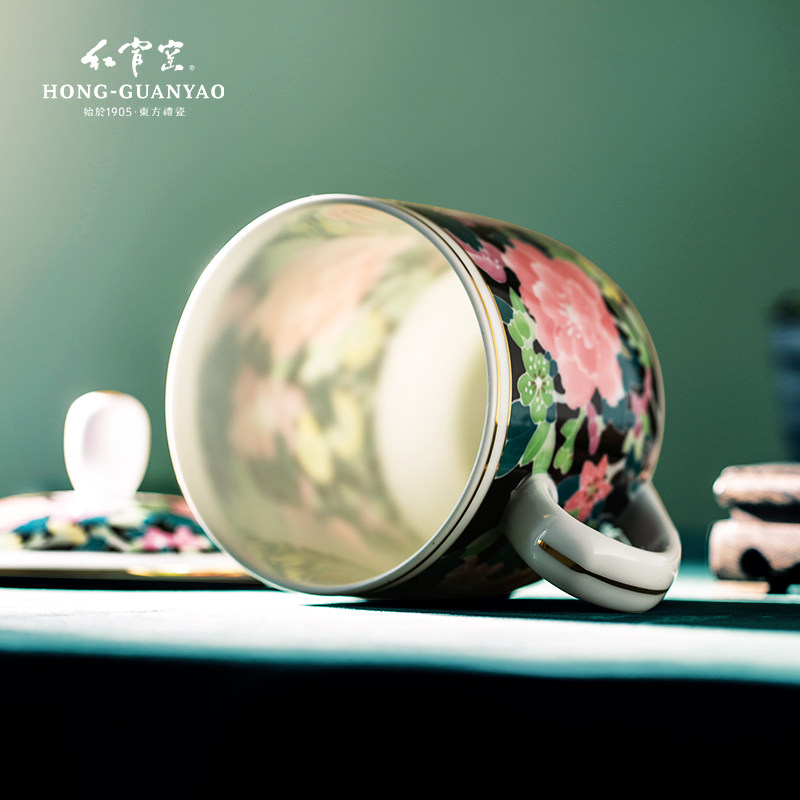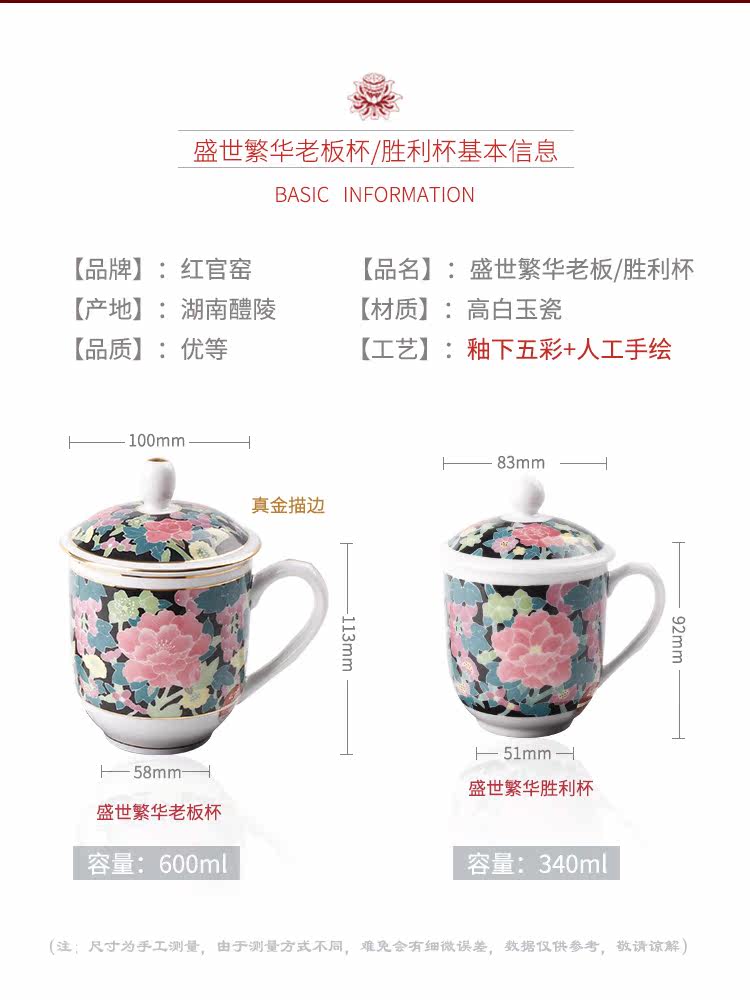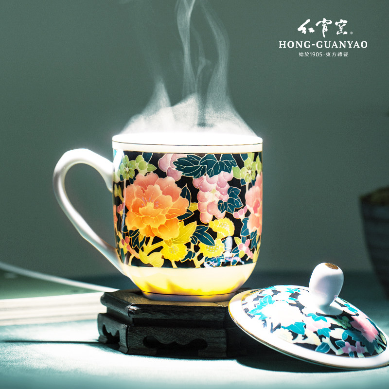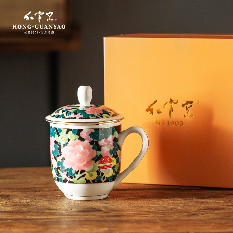 红官窑 Чашка с крышкой фарфоровой чашкой водяной чашки для встречи чашка чашка чашка в китайском стиле.