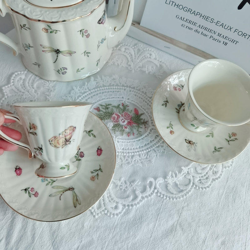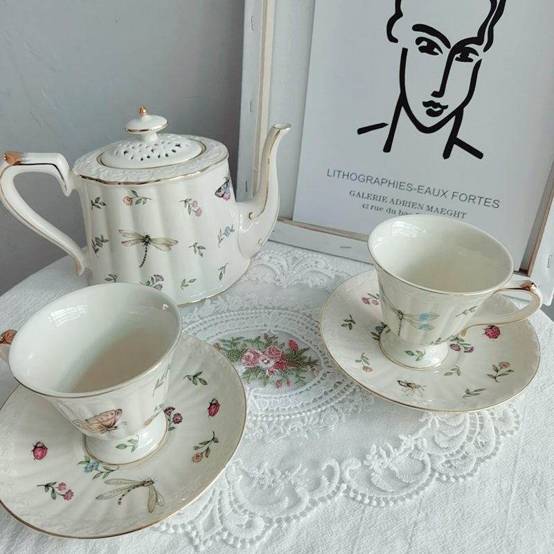 - Dragonfly Butterfly 1 Pot + 2 кофейные чашки и тарелки