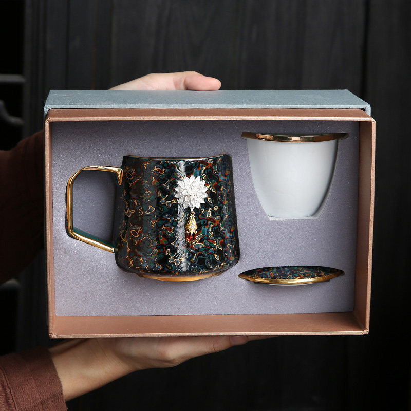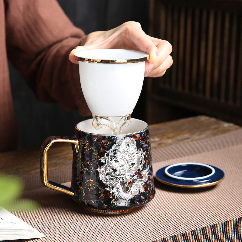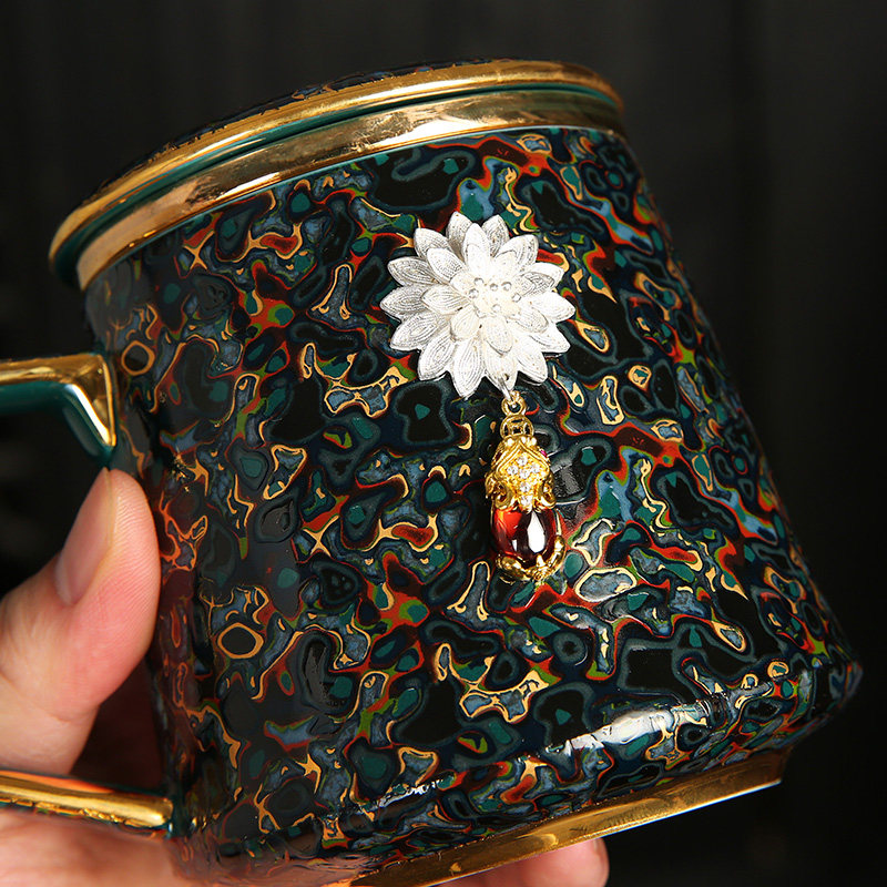 Чашка для разделения чая для домашнего офиса, большая лаковая инкрустация, серебряная керамическая чашка для чая, чашка для воды как высококачественный практичный подарок для пожилых людей