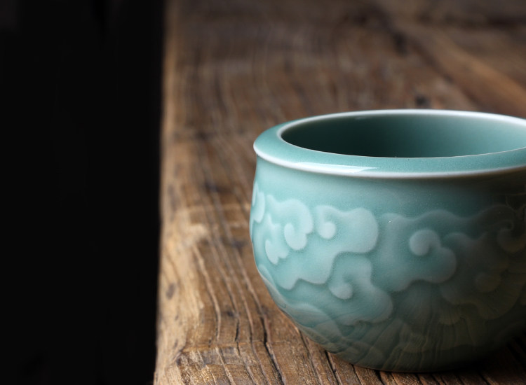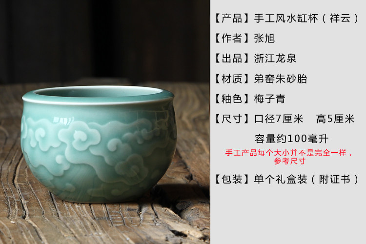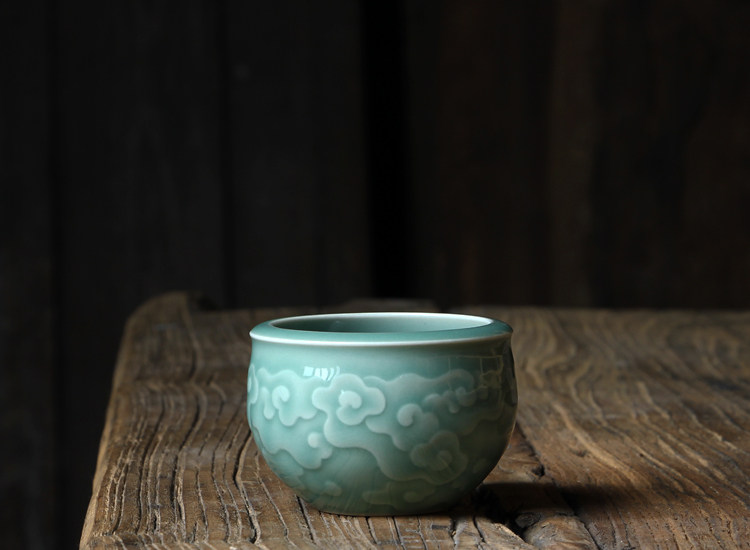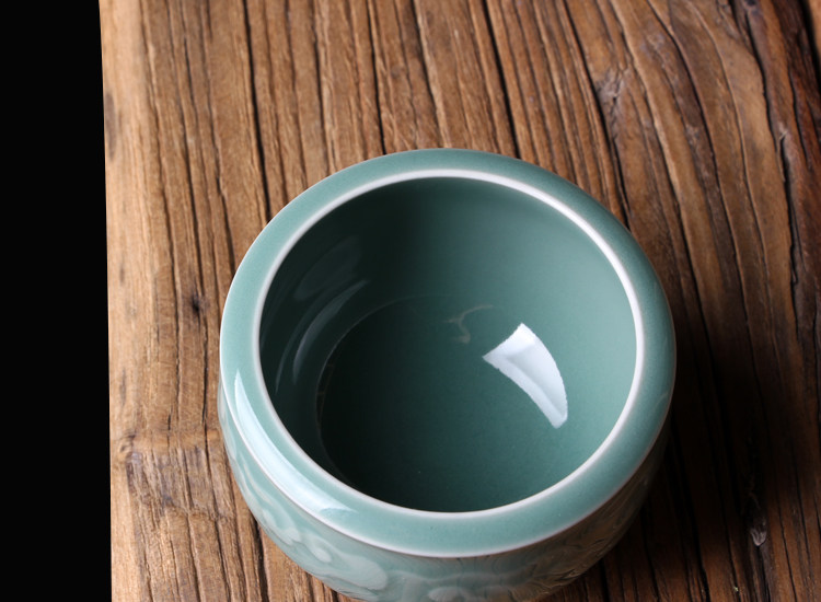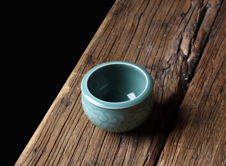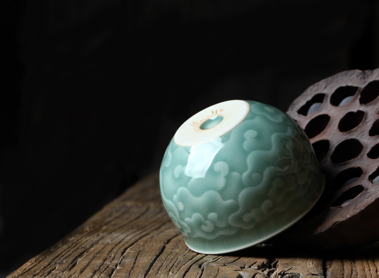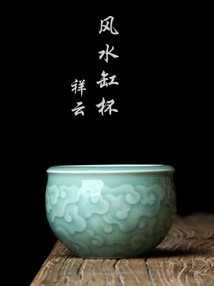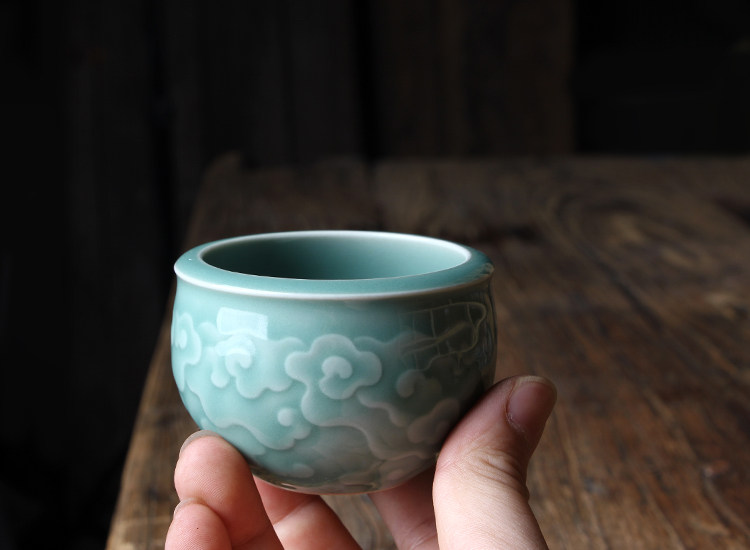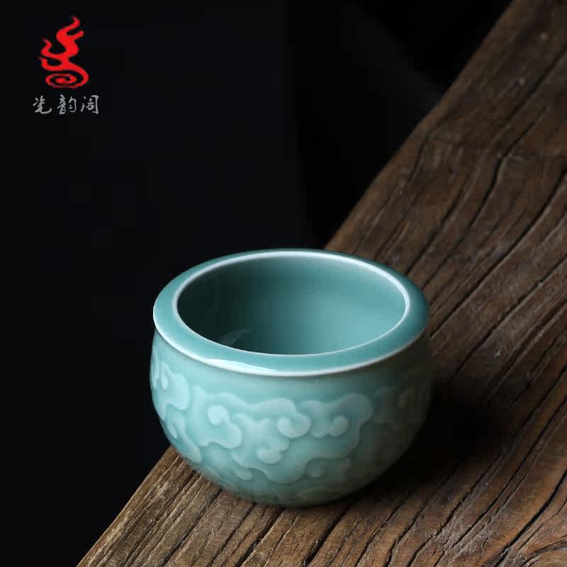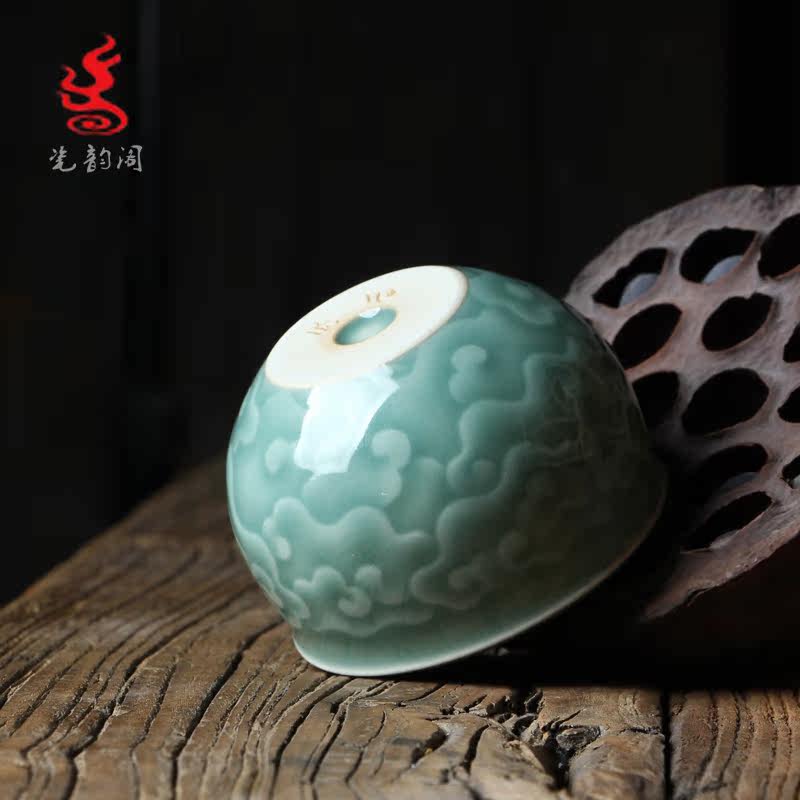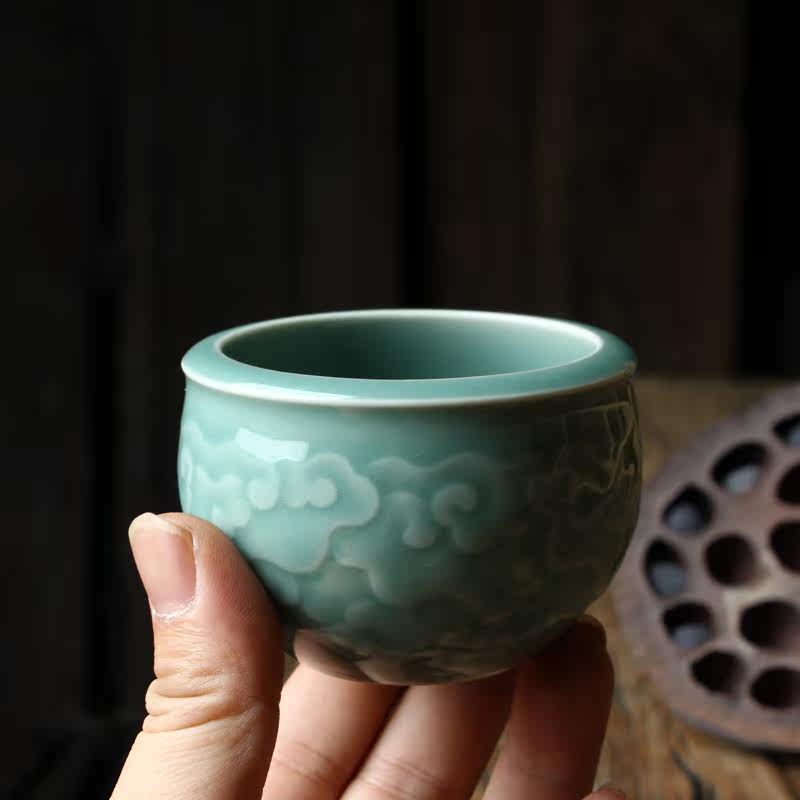 Longquan Celadon Kunge Fu Tea Set Single Master Cup Ceramics Все резные цветы ручной работы, полные гонгксианского облачного цилиндра чашка Jucai Tea Cup