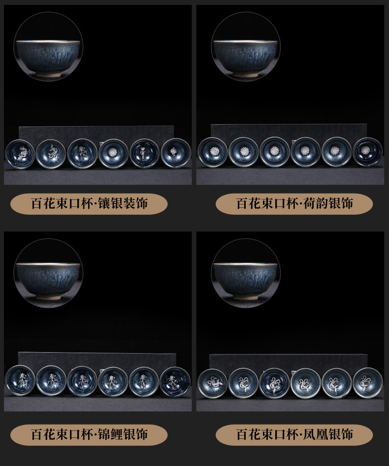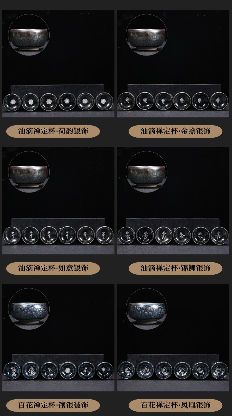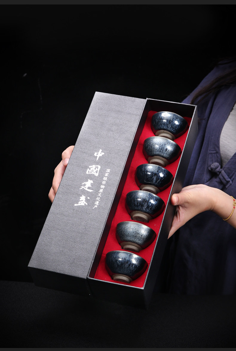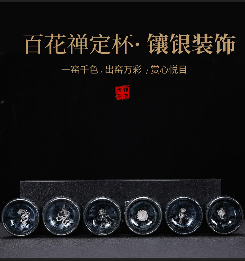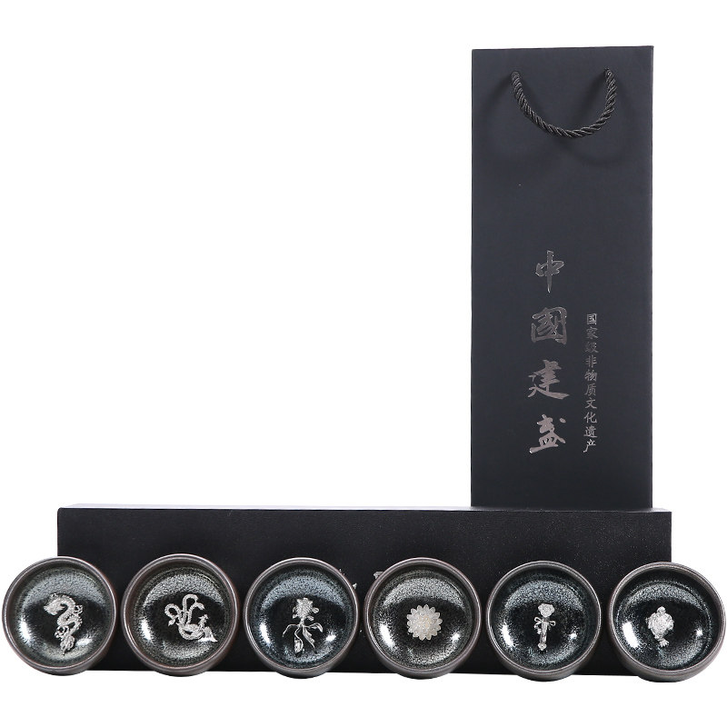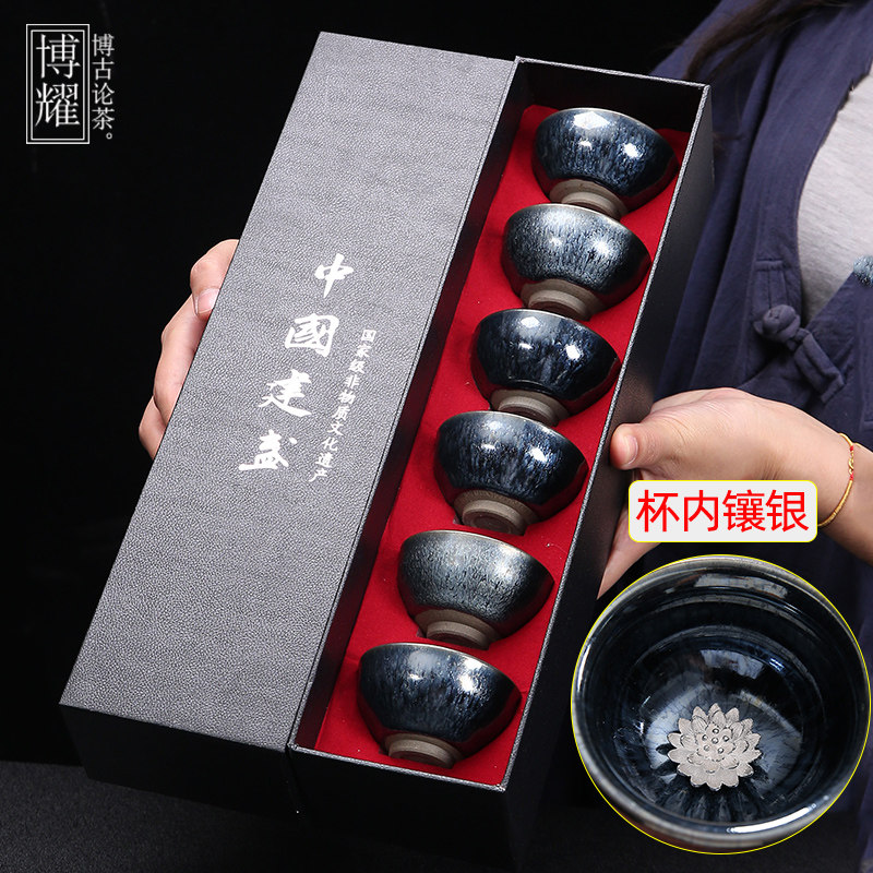 Серебряная серебряная чашка Кубка Мастер Кубка Байхуажана Домашняя Керамика Кунг -фу Тянму Чай чашка 6 стакана подарочной коробки Практические подарки