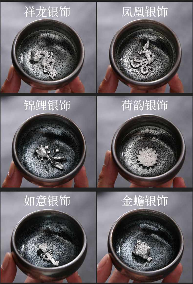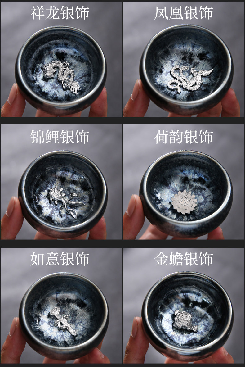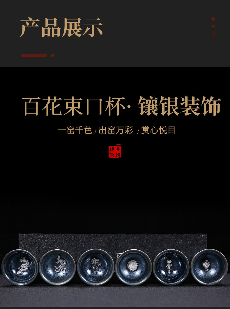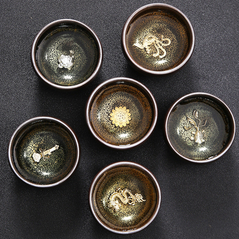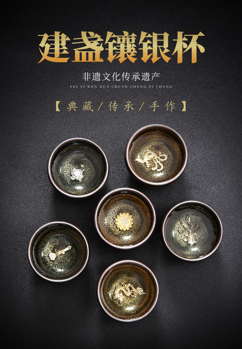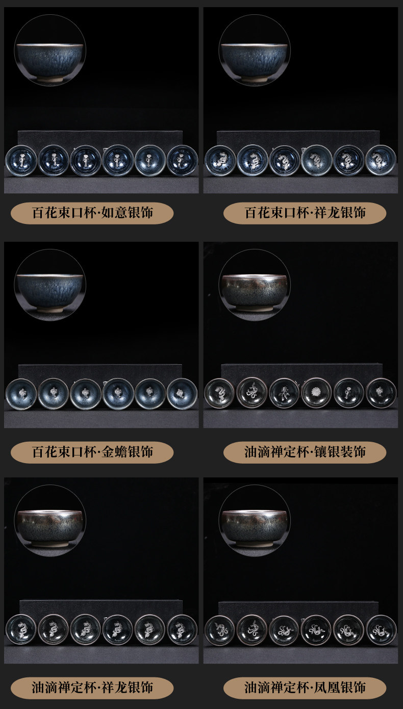 Серебряная серебряная чашка Кубка Мастер Кубка Байхуажана Домашняя Керамика Кунг -фу Тянму Чай чашка 6 стакана подарочной коробки Практические подарки