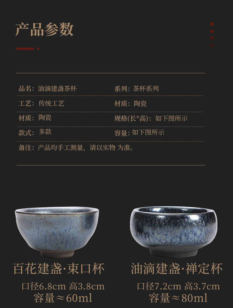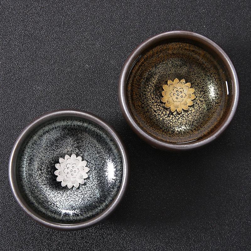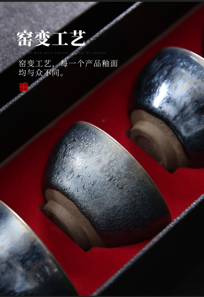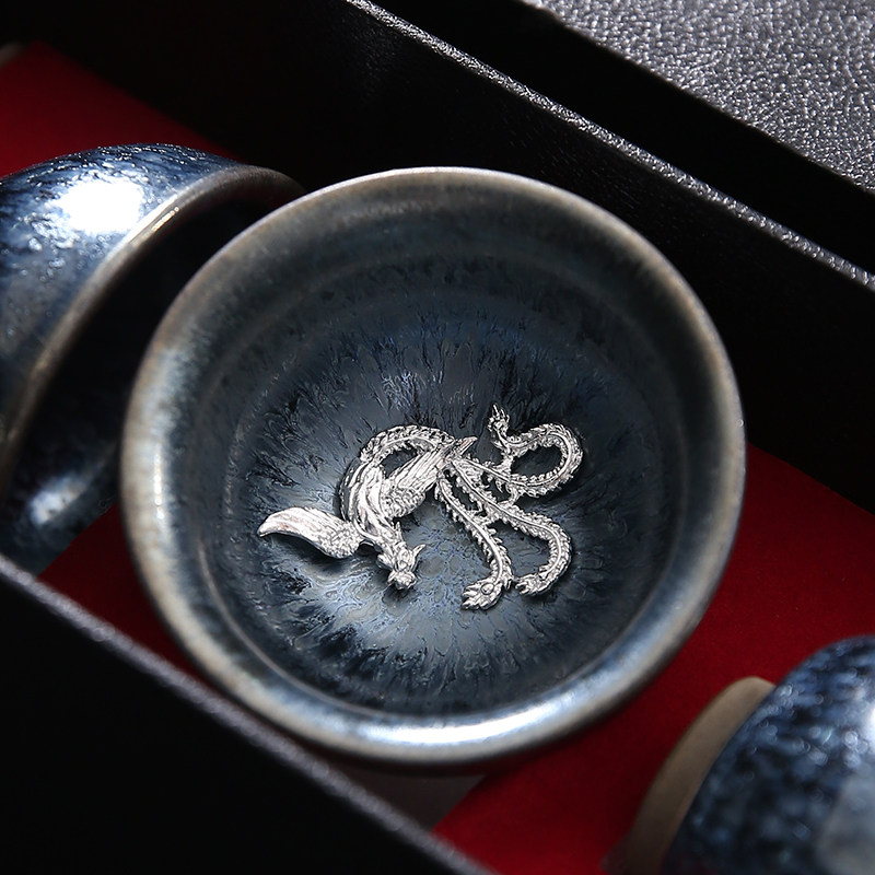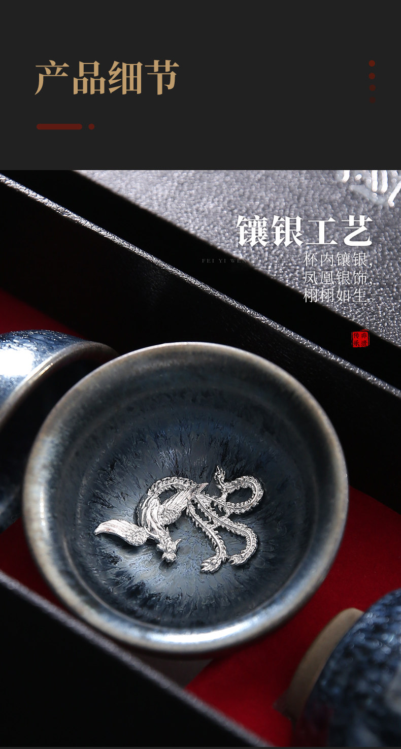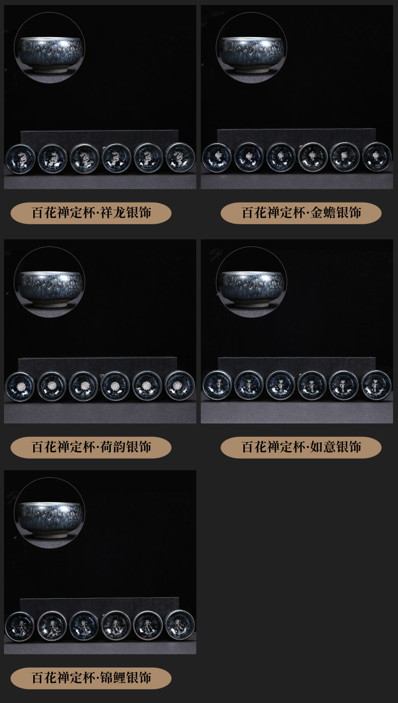 Серебряная серебряная чашка Кубка Мастер Кубка Байхуажана Домашняя Керамика Кунг -фу Тянму Чай чашка 6 стакана подарочной коробки Практические подарки