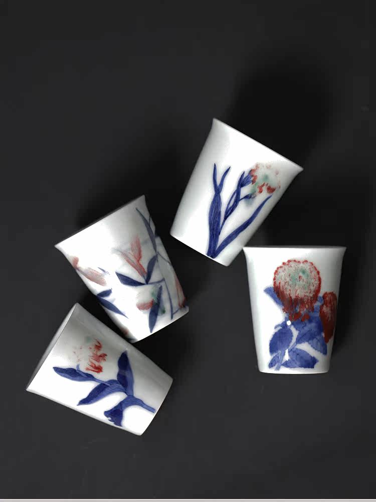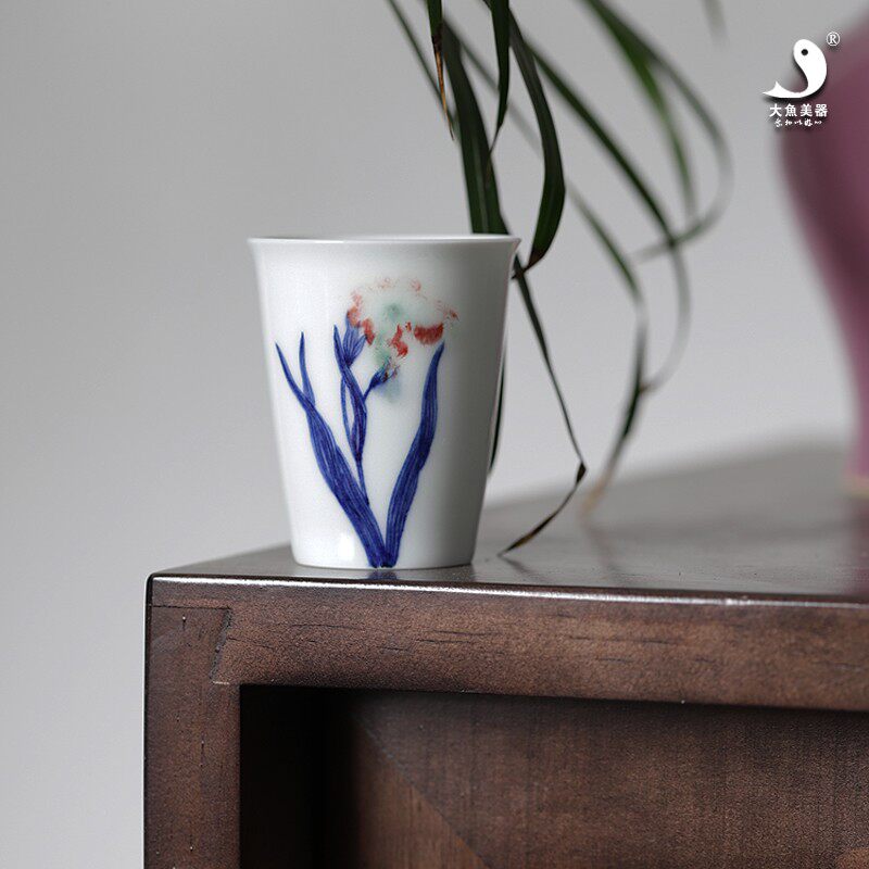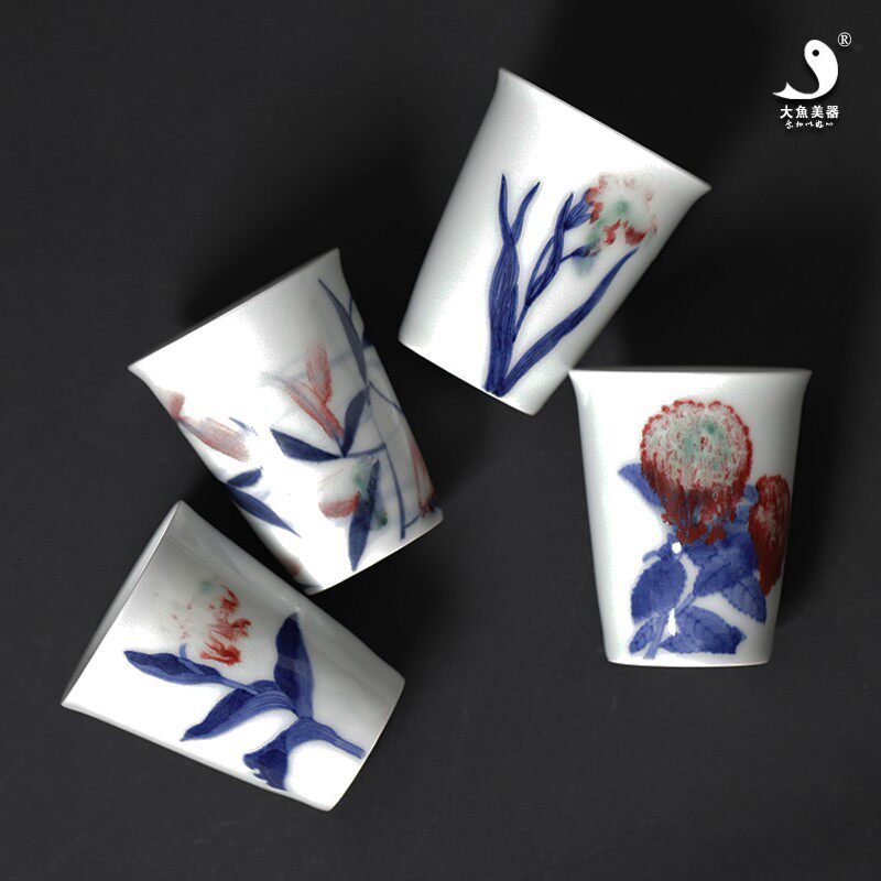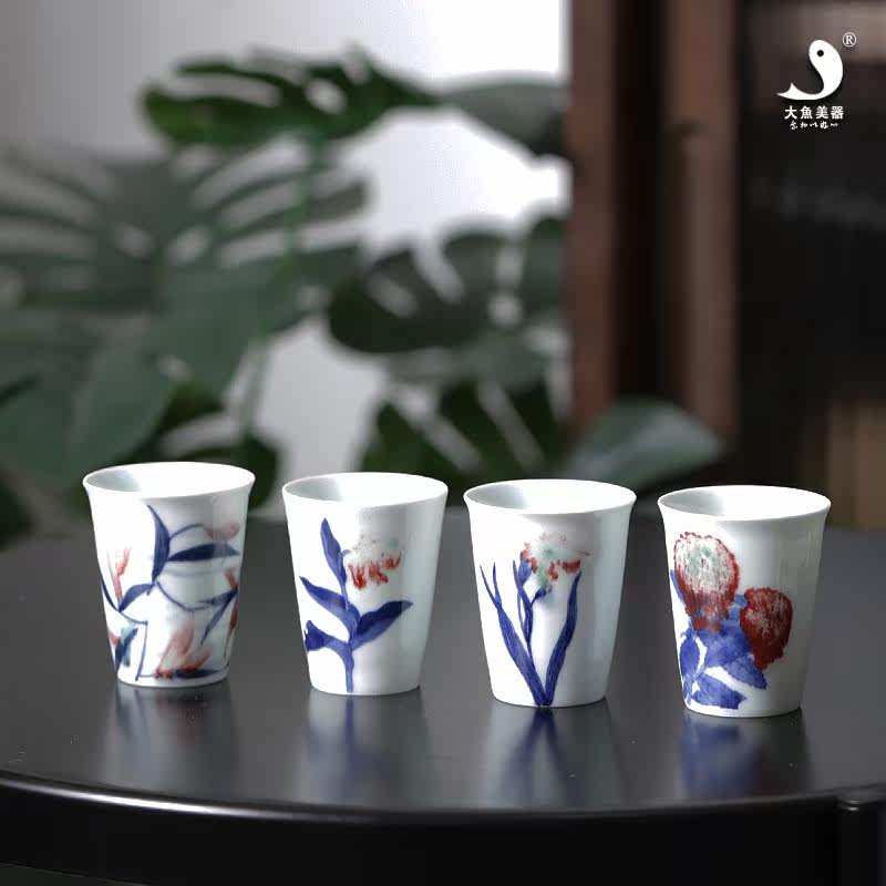 Большая рыба красавица синяя и белая глазурь Red Cup Cuck Cup Jingdezhen Ceramic Pure Hand -Painted Master Cup Smoil