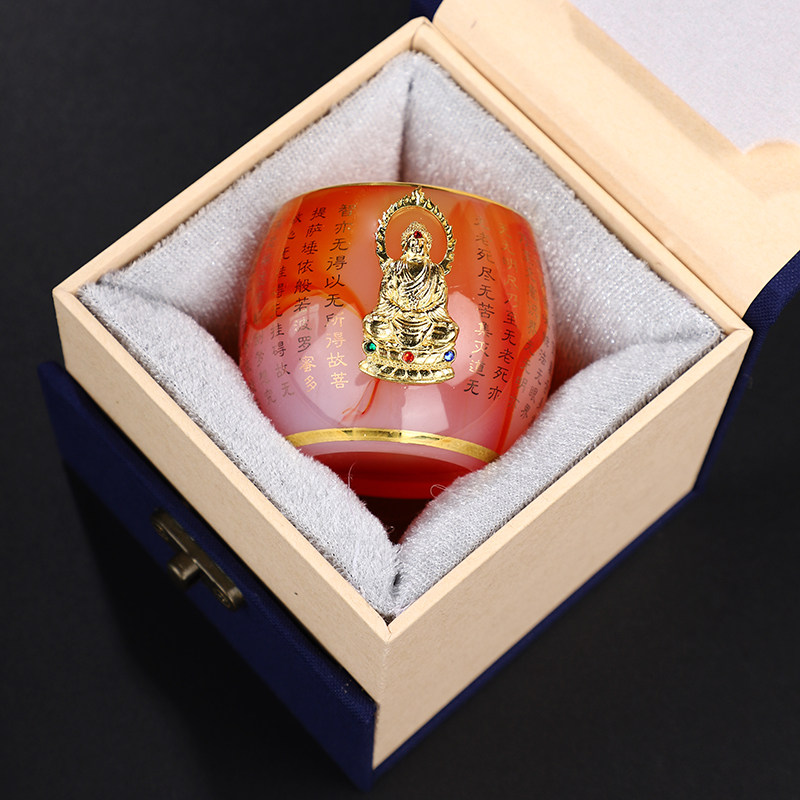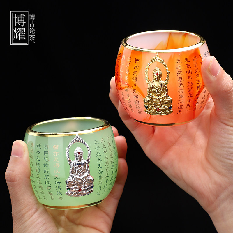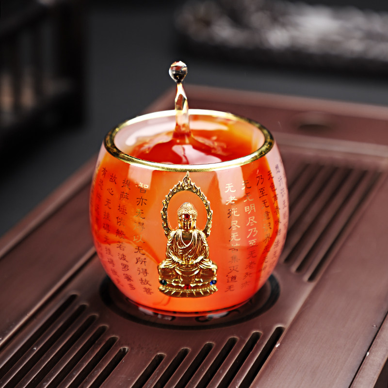 Золотая инкрустация застекленной чайной чашки, овечья фарфоровая статуя Будды Сердца Серры сердца первой чайной посуды кунг -фу, чашка подарочная коробка