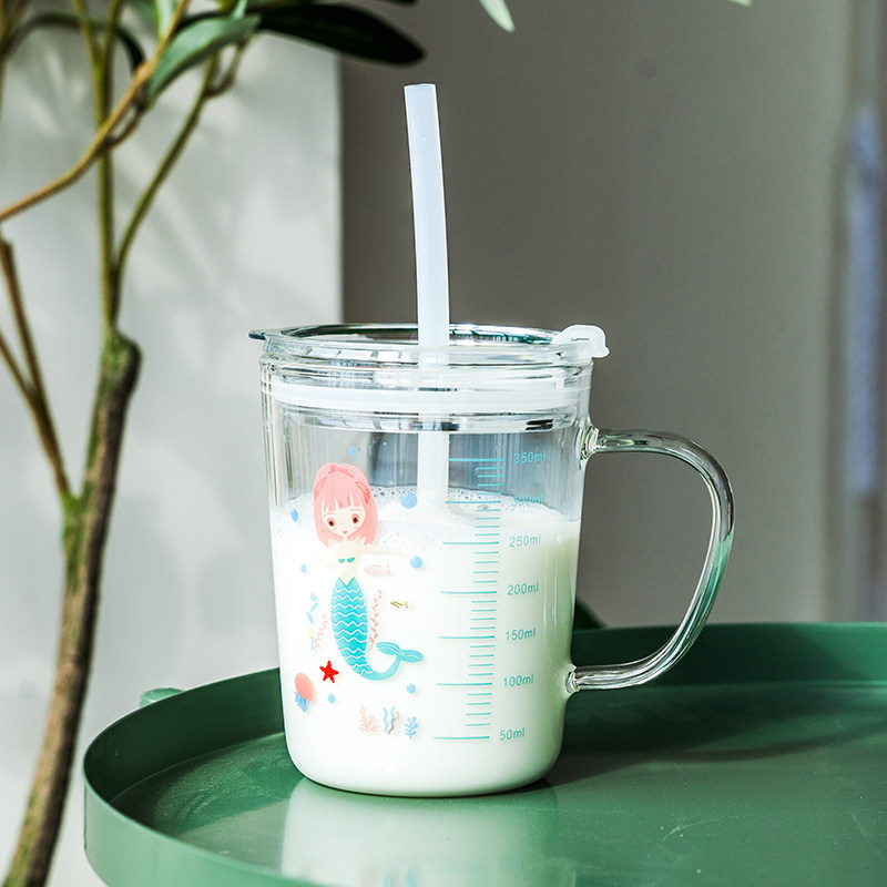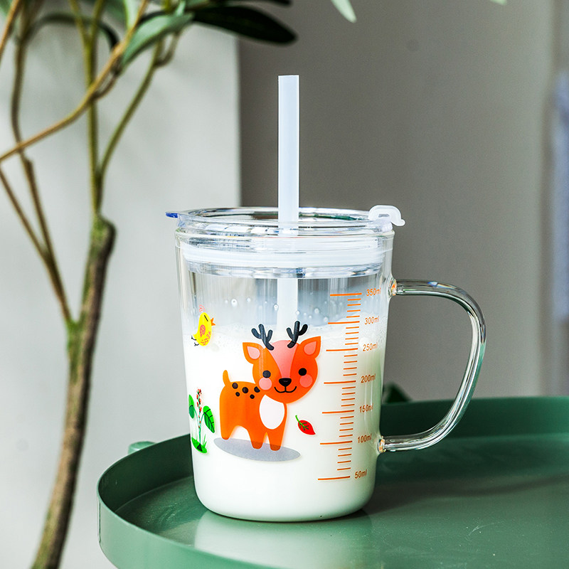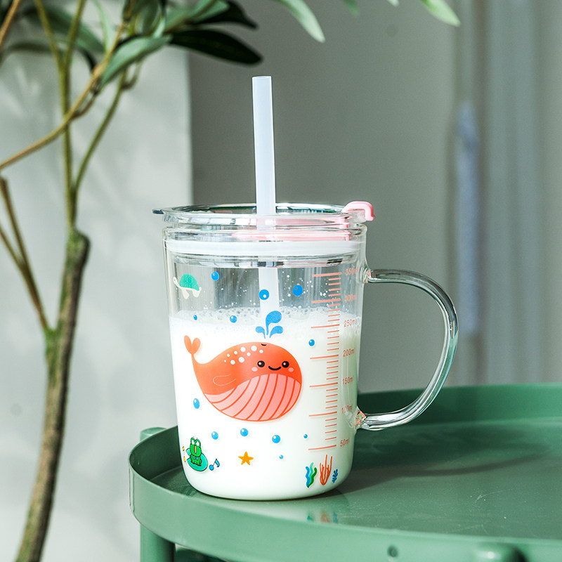 Мультяшная стеклянная детская измерительная кружка со шкалой