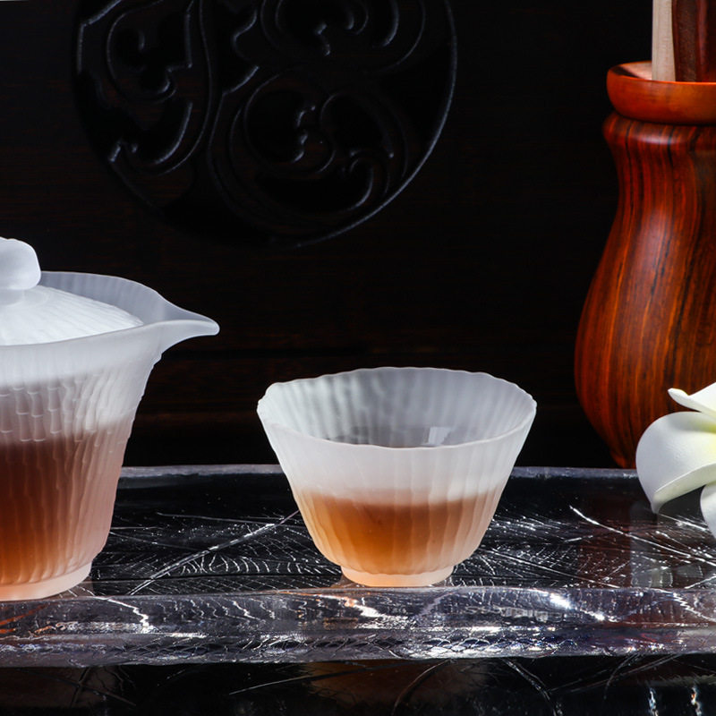 Матовая стеклянная чайная чашка, бамбуковый чайный сервиз