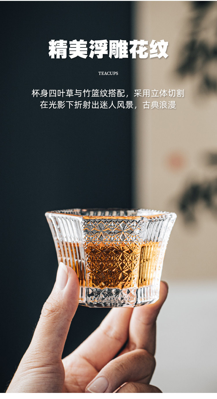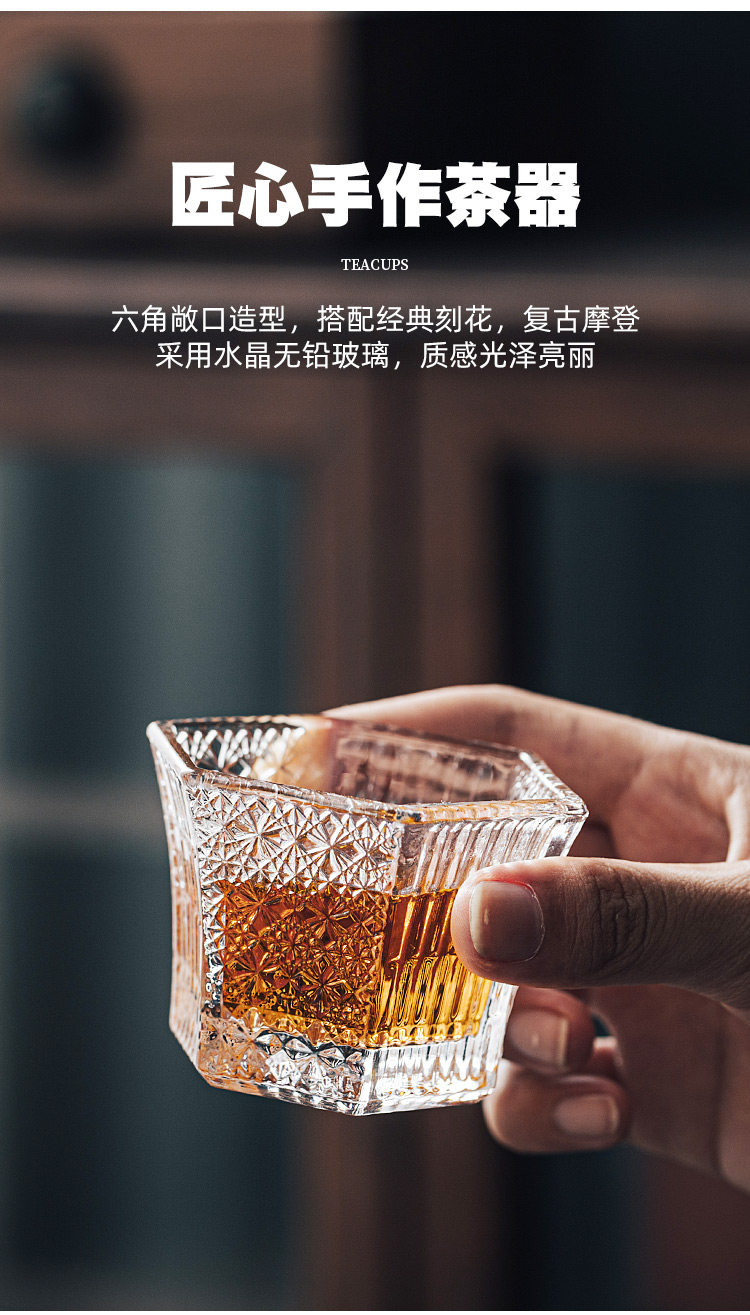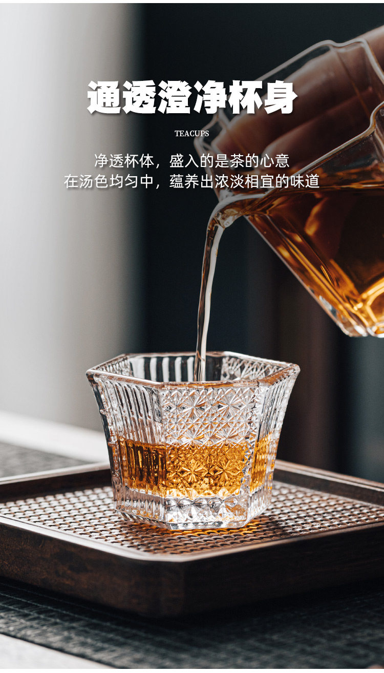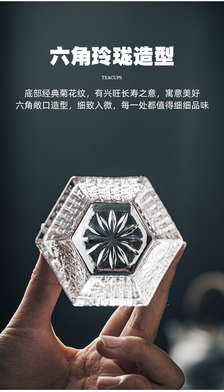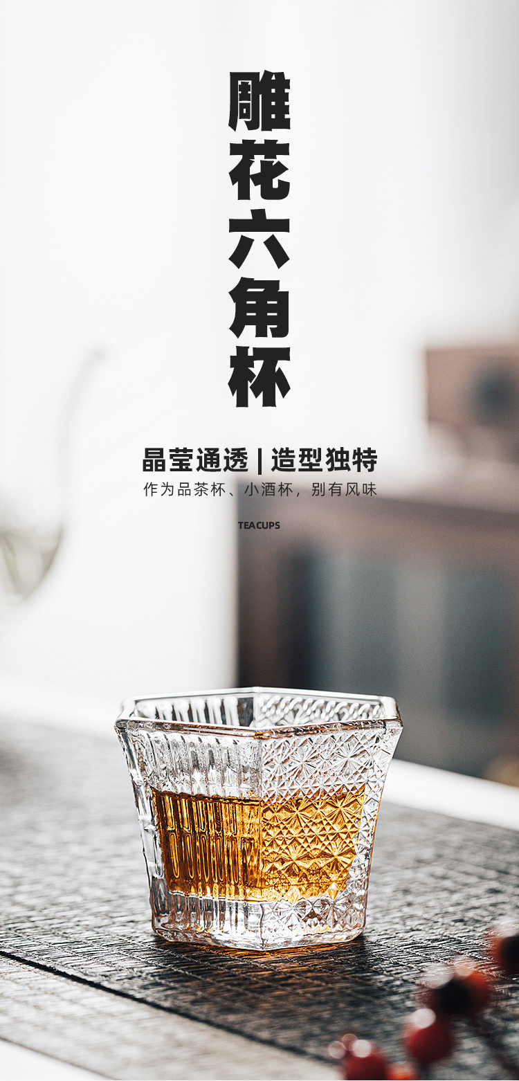 Резная стеклянная чайная чашка, мастер-чашка, высококачественная шестиугольная чайная чашка, чайный сервиз, специальная чашка для чайной церемонии, маленькая чайная чашка кунг-фу, одинарная