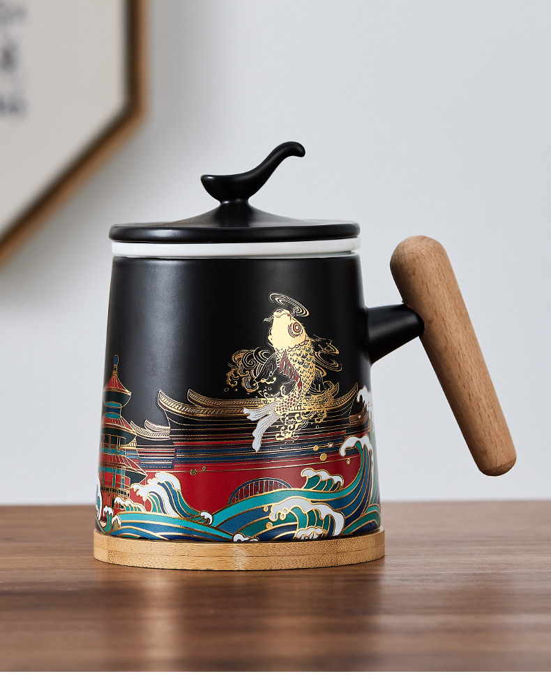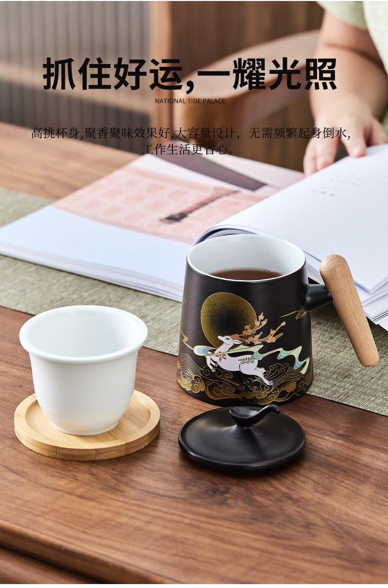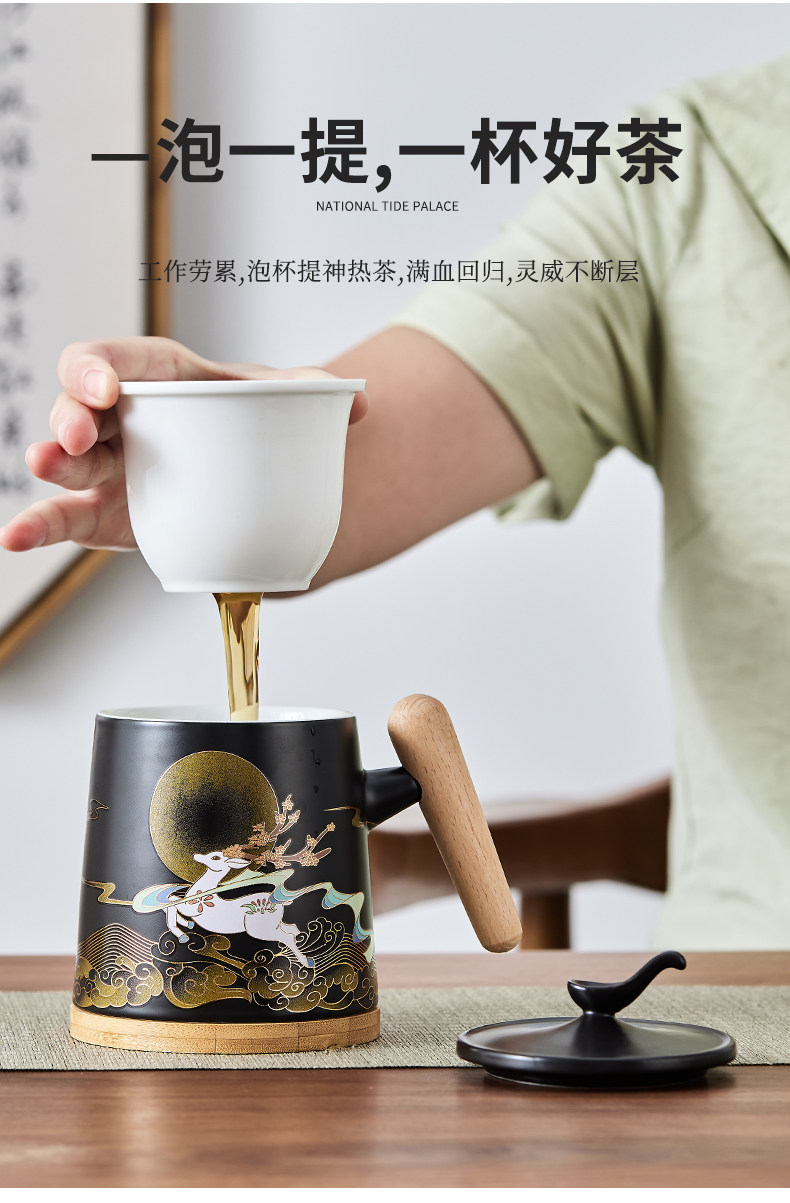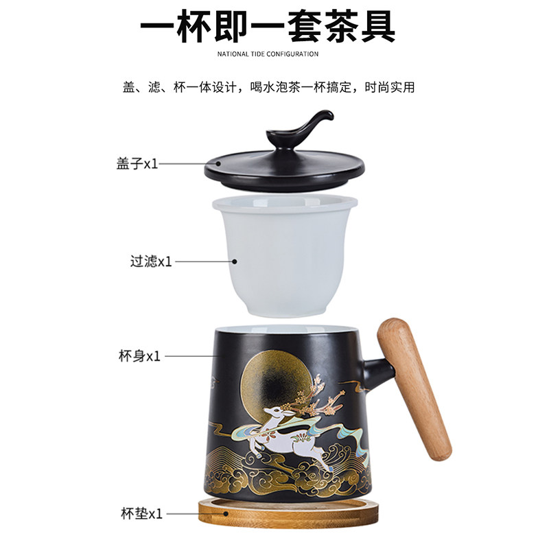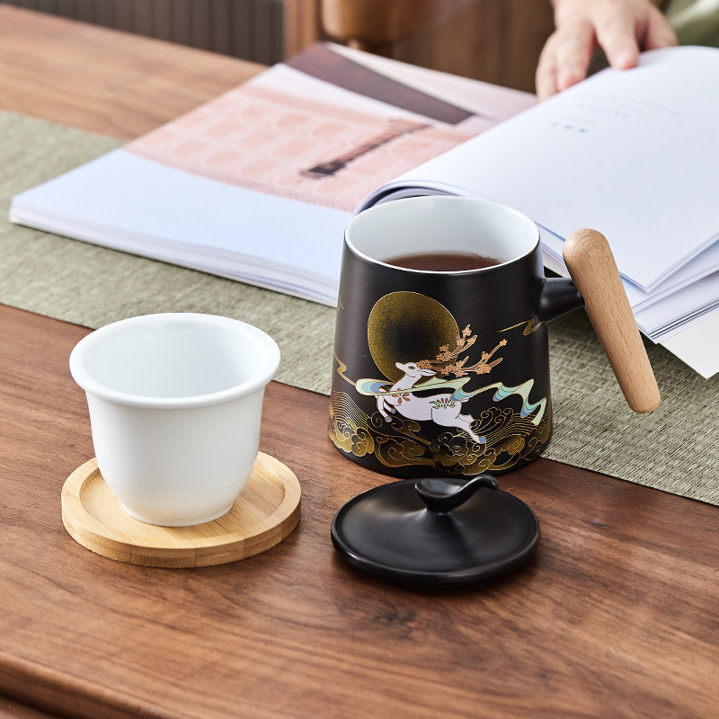 Чайная чашка большой емкости, керамическая бытовая чашка для питья с фильтром и крышкой, офисная личная чашка для разделения чая