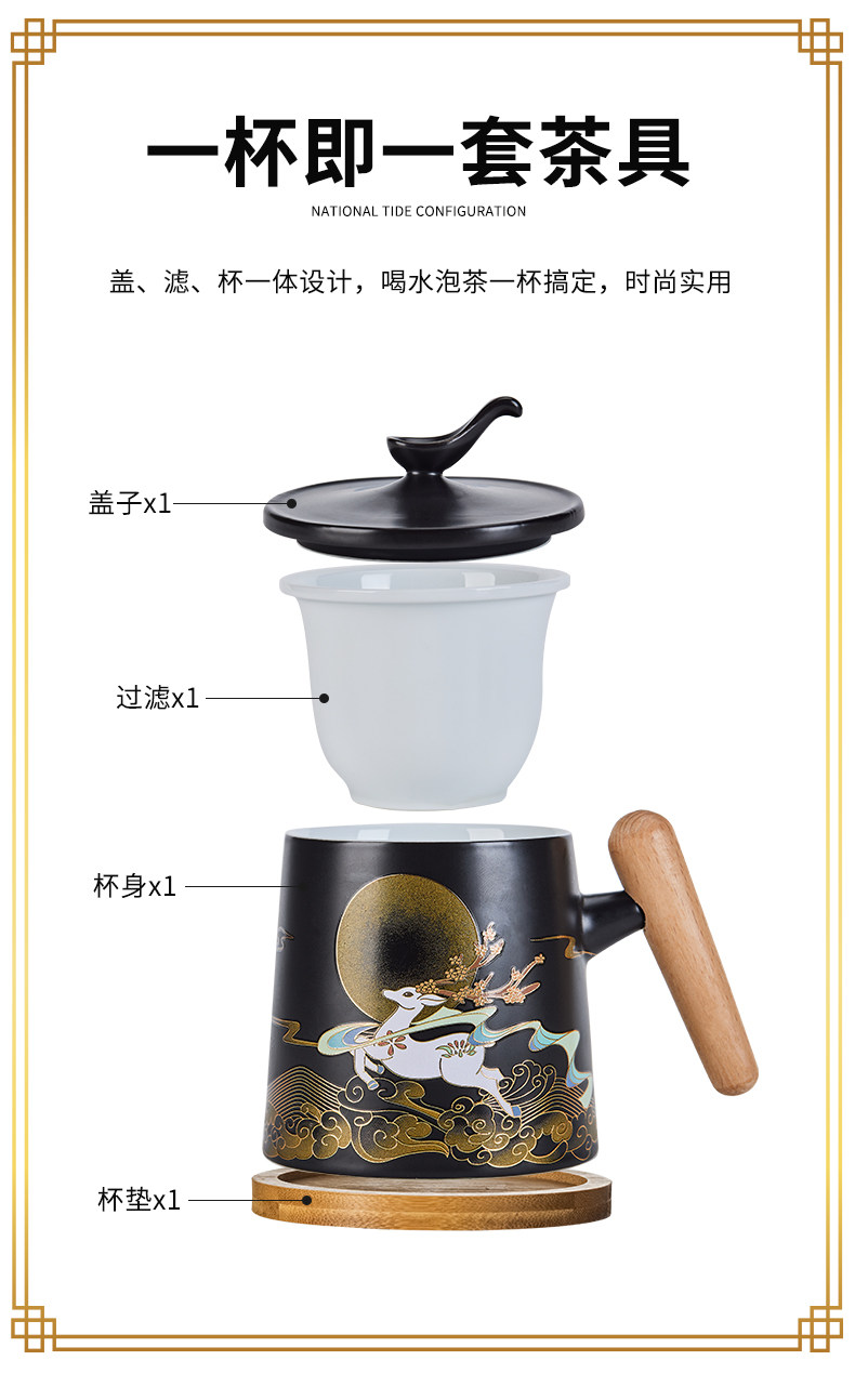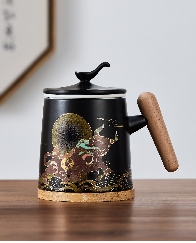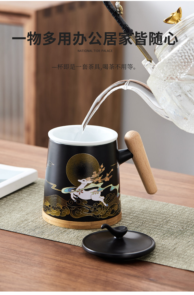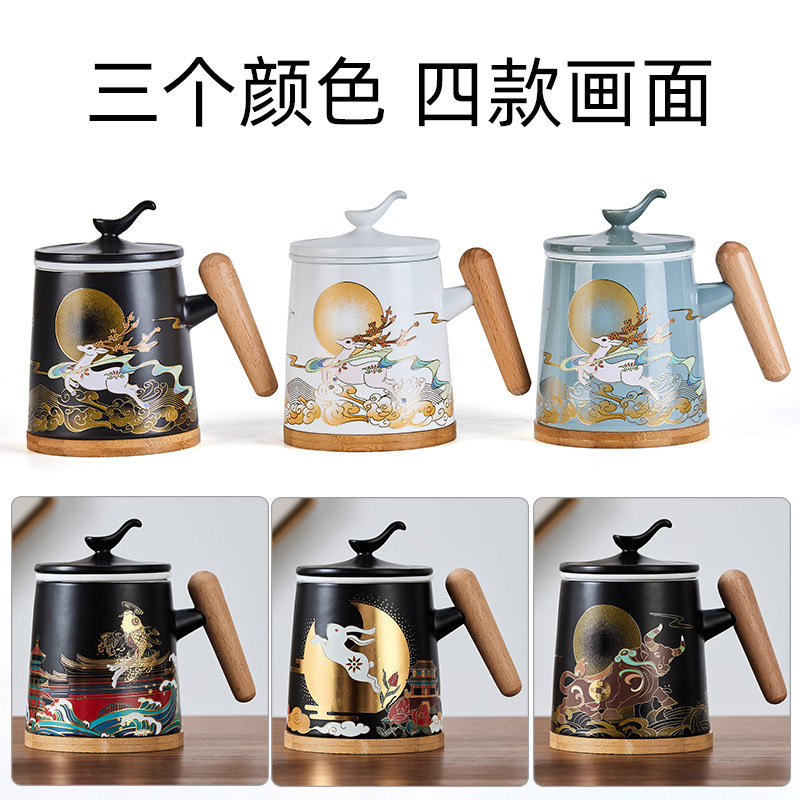 Чайная чашка большой емкости, керамическая бытовая чашка для питья с фильтром и крышкой, офисная личная чашка для разделения чая