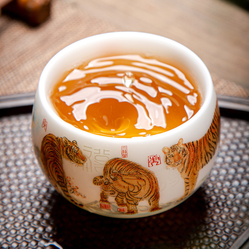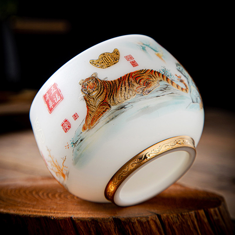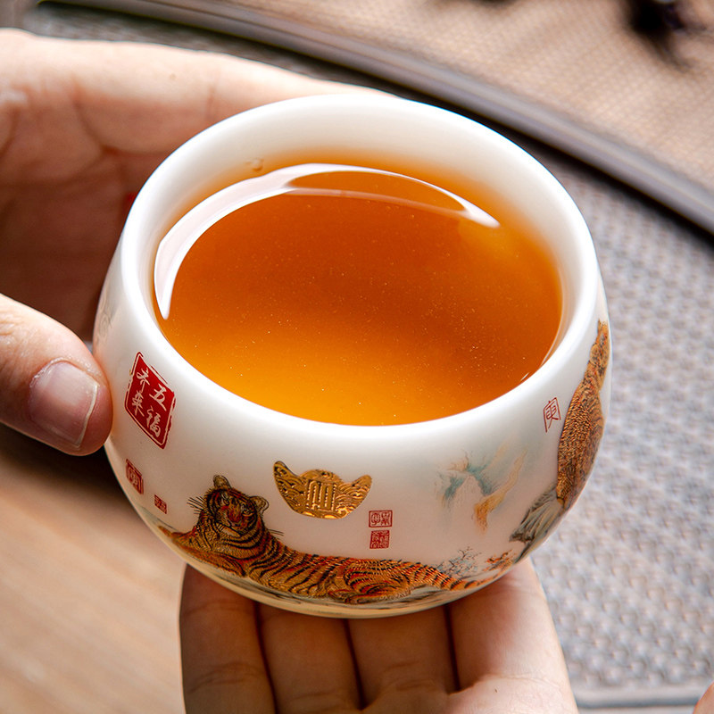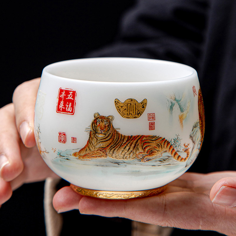 Dehua Sheep Lord Jade Фарфоровый чайный чашка китайский дворец пять тигров