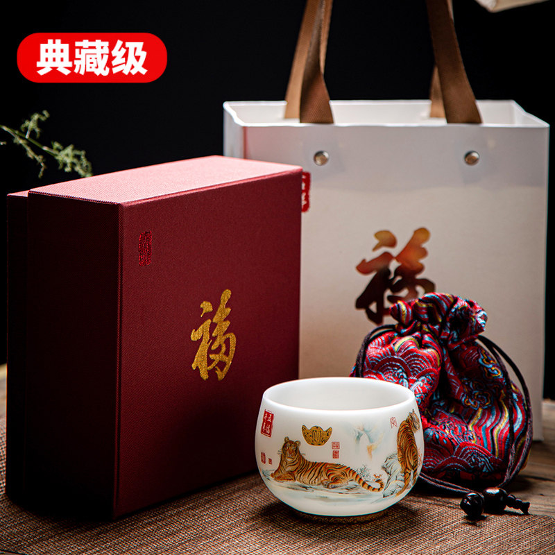 | Цвет: | Барашковая жирная нефрита пять благословений (пять тигров) чайная чашка - подарочная коробка |