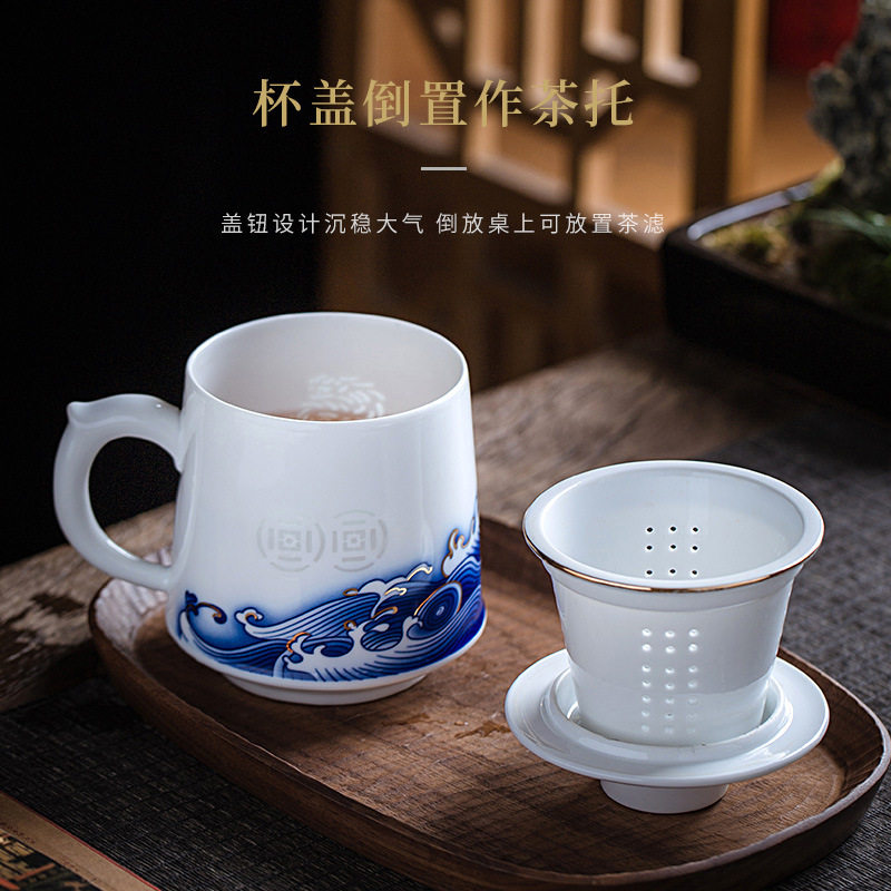 Сине-белая вместительная и большая чайная чашка, керамический фильтр для домашнего использования, подарок на день рождения