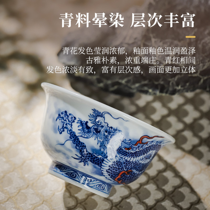 Jingdezhen Ceramic Blue и White Dragon Patterm Press Cup Master Cup High -End индивидуальная специальная чашка чашка чашка мужчина и женские модели