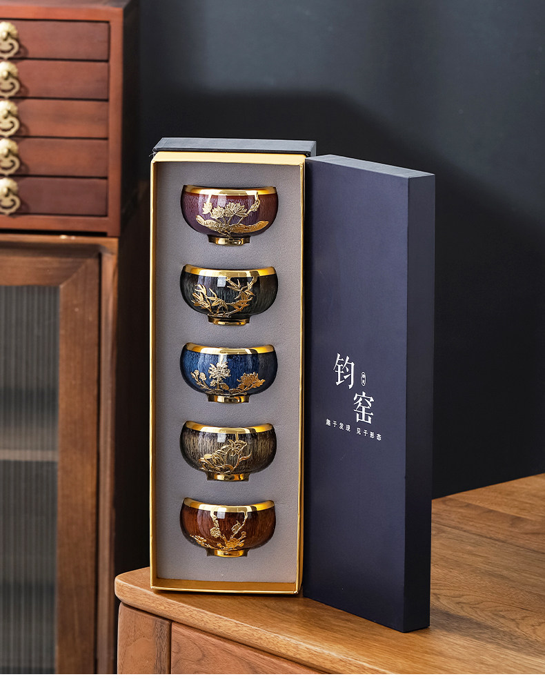 КИЛН ПРОИЗВОДИТЬ Кубок Золотой нефрит пять элементов Кубка Мастер Кубка Персональная сингл кунг -фу чай для чая керамика Керамика Кубка подарочная коробка