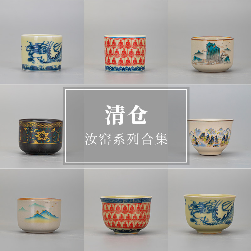 Clearance Ru Kiln Чайная чашка Керамический чайный сервиз кунг-фу Чайная чашка Домашняя личная специальная чашка Сине-белая мастер-чашка Одиночная чашка