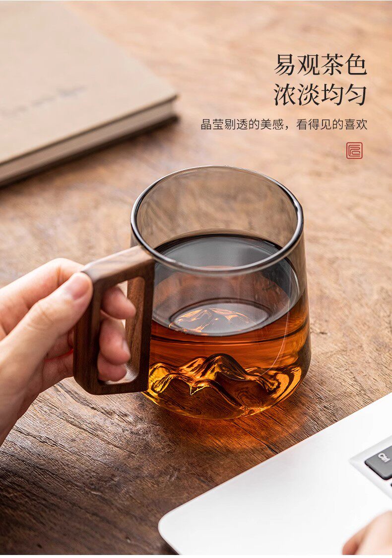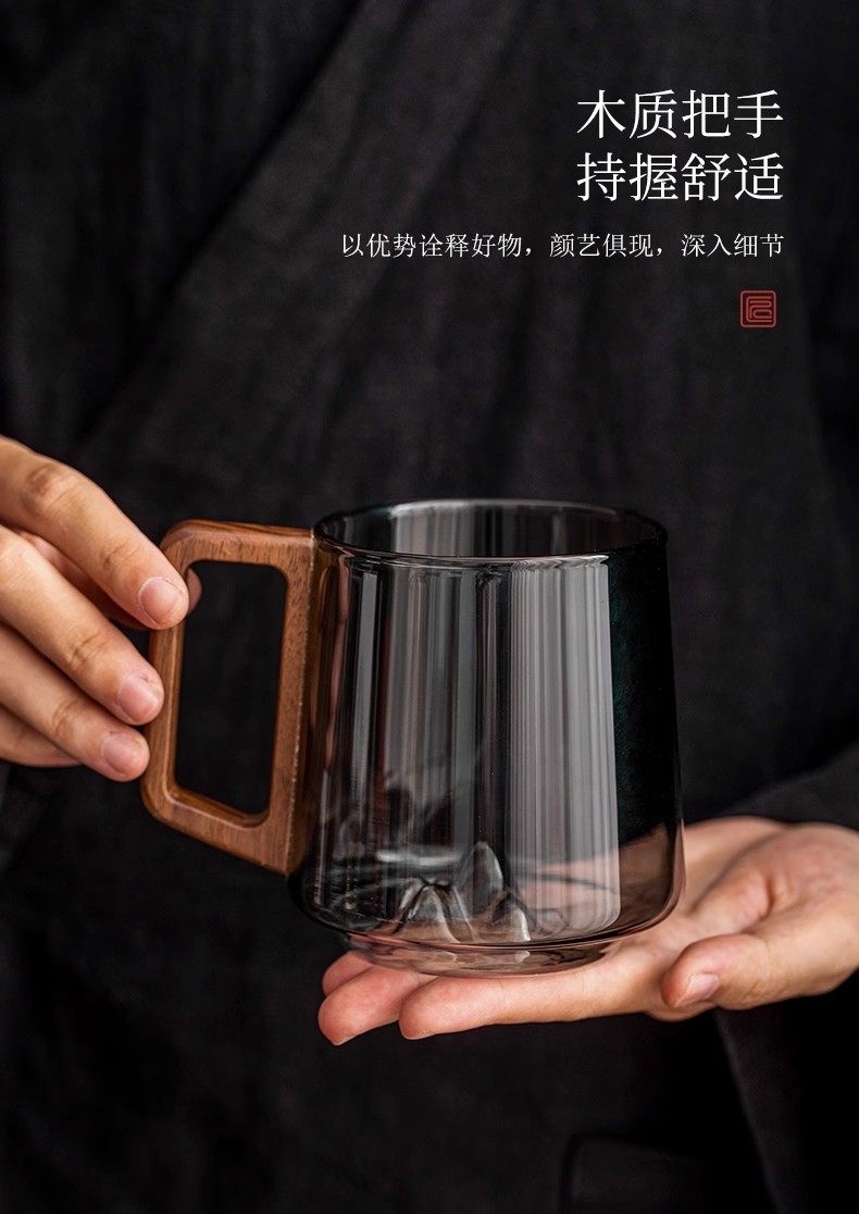 Ясеневое стекло, термостойкая мужская креативная чайная чашка, горная чашка с дном, деревянная ручка, мастер-чашка, элитная личная чашка для воды