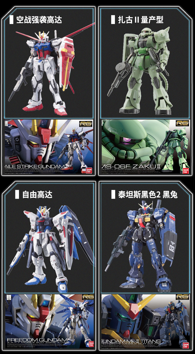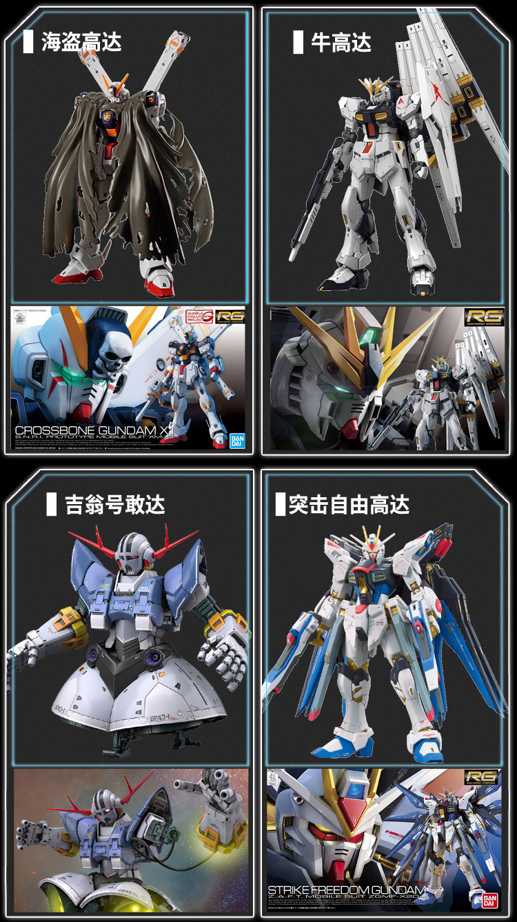 | Цвет: | RG01-Yuanzu Gundam, RG02-Xia ya Hongzhagu, RG03-Air Battle Assault Gundam, RG04 Zagu II тип массового производства, RG05 БЕСПЛАТНЫЙ Гандам, RG06-SKK, RG07-титаны черный кролик, RG08 Белый кролик Август, RG09 Справедливость осмеливается, RG10-Z Gundam, RG11-Destiny Gundam, RG12-DA DA DA № 1 Машиная земельная война, RG13-Gundam № 1 Космический тип, RG14-Freedom Freedom Gundam, RG15-Angel Dare достичь, RG16-Xiaya Special Magic Crab, RG17-ангал летающий крыло Gundam, RG18-00 Укрепленный истребитель, RG19-Red End, RG20-летающее крыло EW, RG21-QUANTUM GUADA, RG22-Xin'anzhou, RG23-Creative Attack Gundam, RG24-Golden Duan Tianmina |