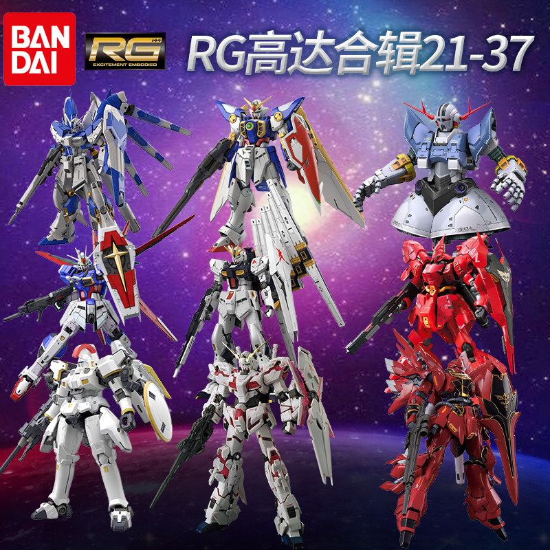 | Цвет: | RG25** Единорог Гандам, RG27** Банши, RG28** Дорукис, RG29**Сазаби, RG30** полностью вооруженный единорог, RG31** Пиратский Гандам, RG32** Ню Гандам, RG33** Воздушный боевой импульс Гандам, RG34**Жан, RG35** Анимационная версия Wing Gundam, RG36 ** HI-V COW, RG37** Бог Гандам, RG38** Эбиан Гандам |
