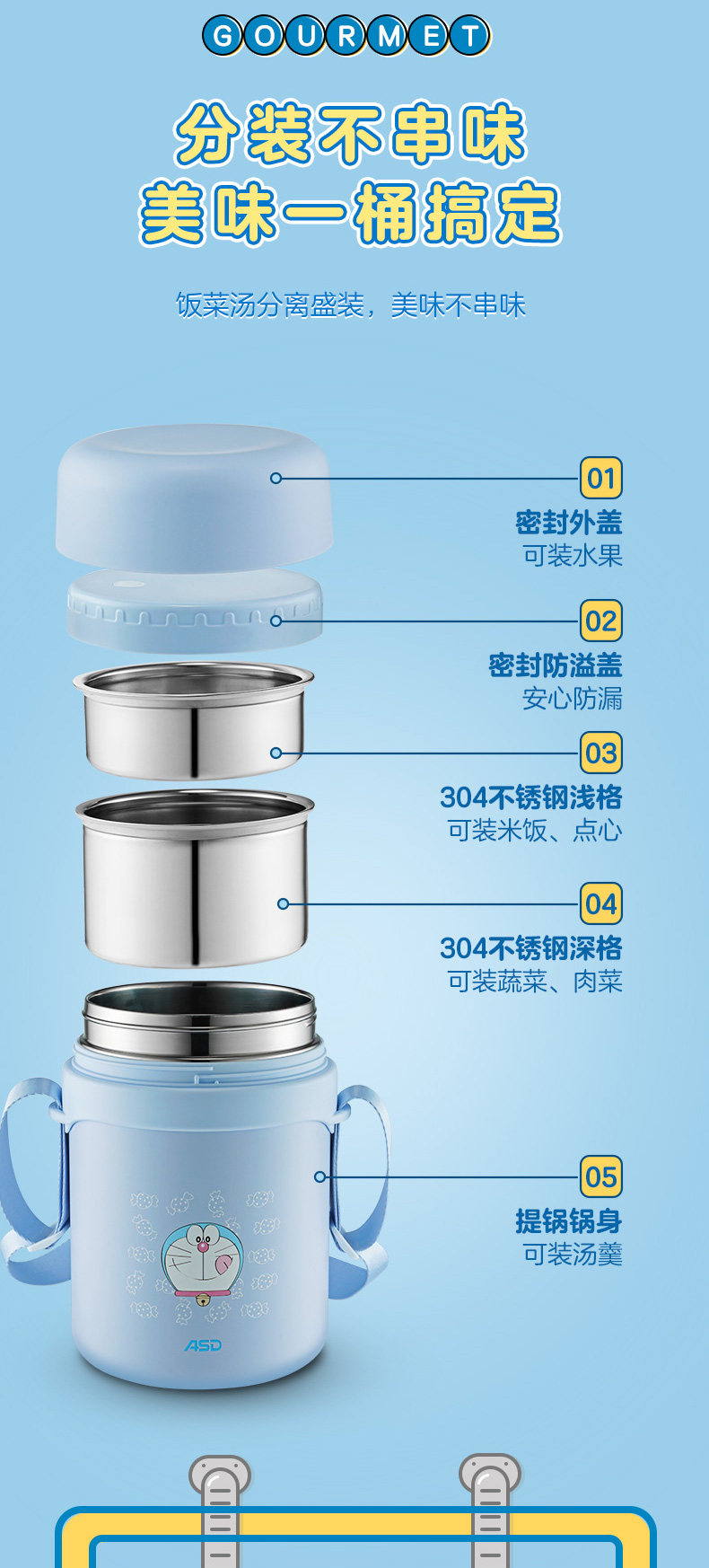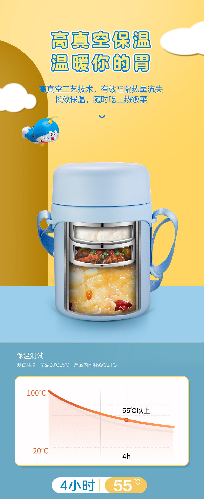 Термос, портативный ланч-бокс из нержавеющей стали для школьников