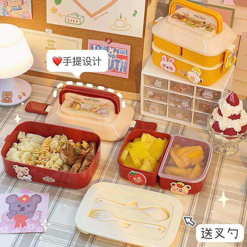 Милый японский ланч-бокс для школьников, пакет, переносная банка для хранения, посуда