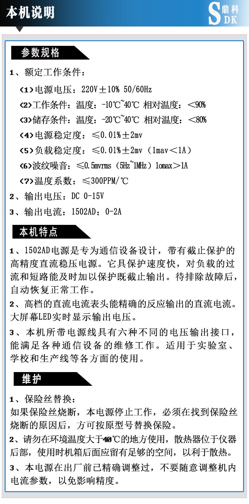 Dingke 1502AD DC Стабилизация мощности Соответствие источника мощности