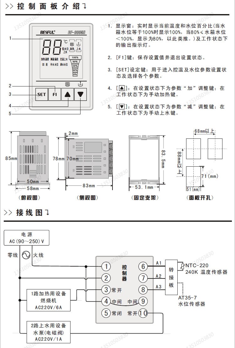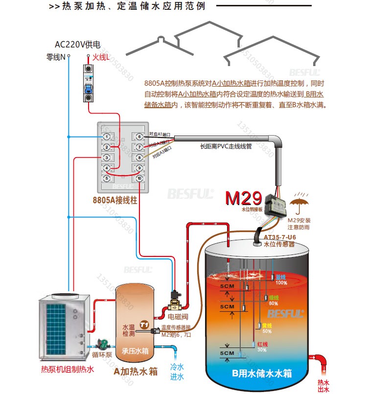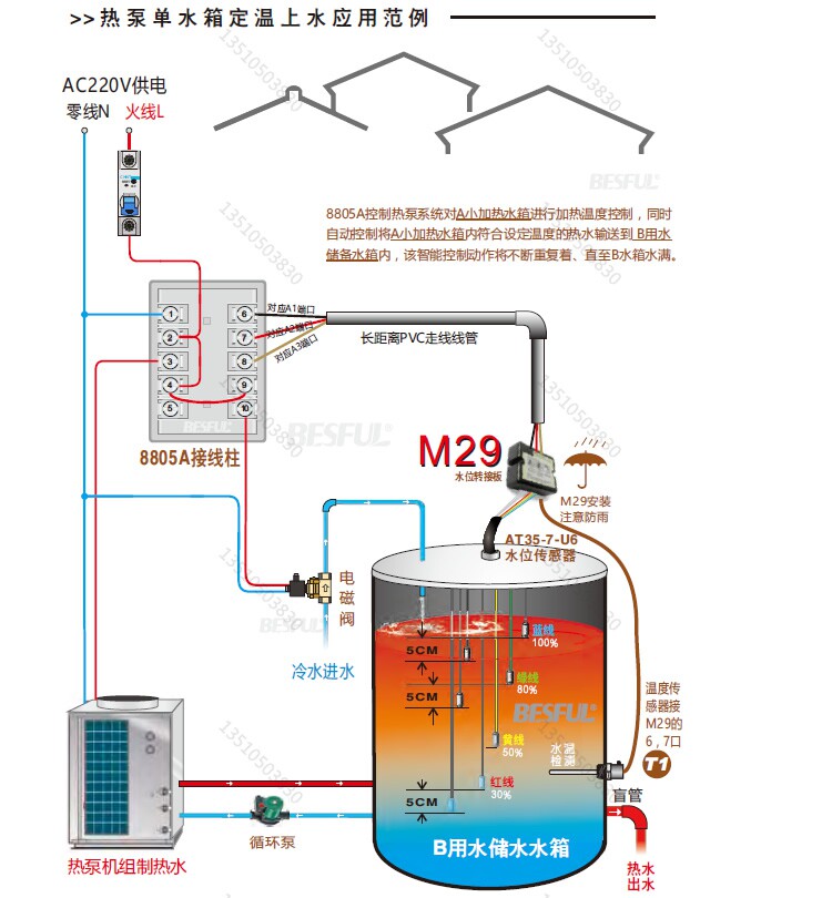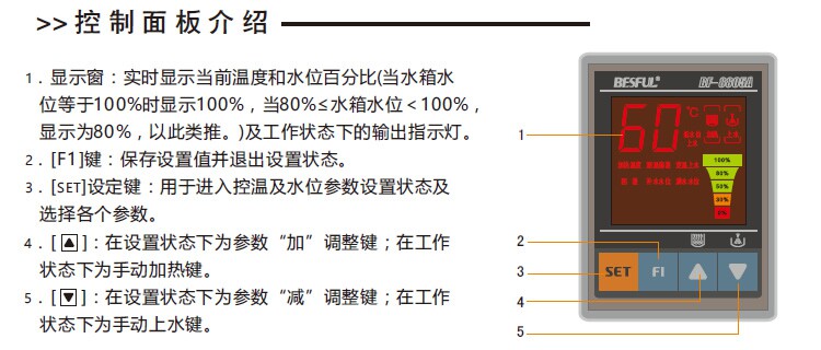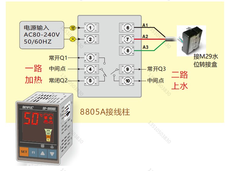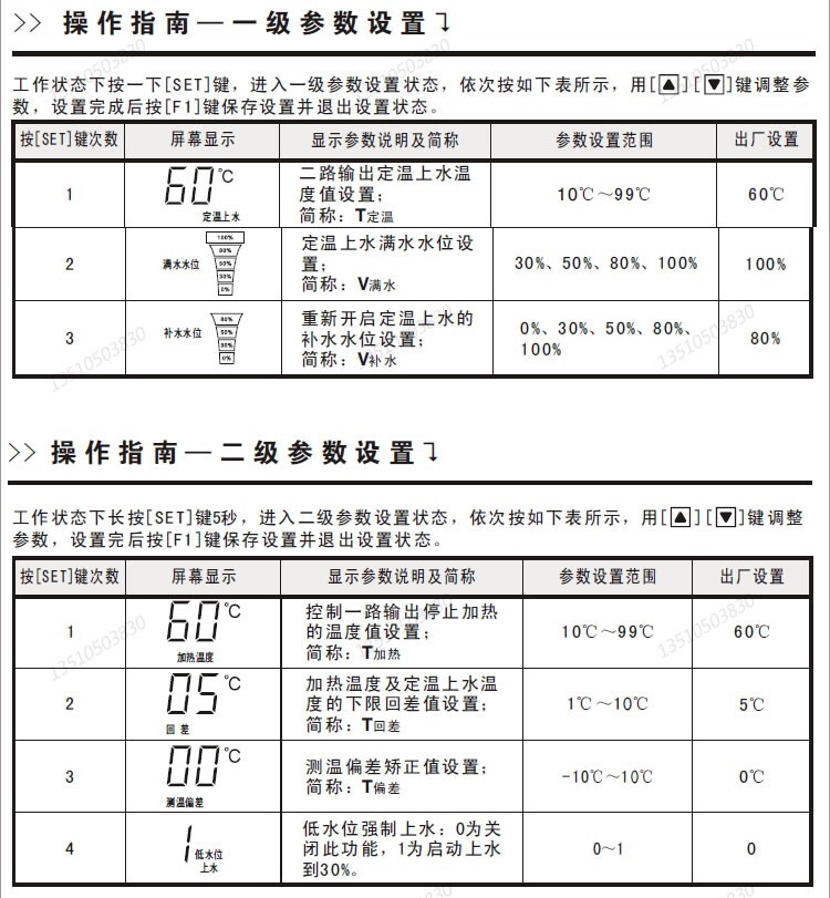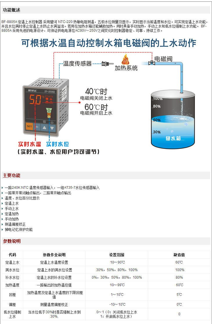Ответ: Это связано с тем, что контроль уровня воды 8805A имеет верхний и нижний предел. Когда уровень воды достигает 100%от полной воды, вода будет показывать 80%, если вода оставляет 100%. Если температура достигает воды, Он не запустит фиксированную температурную воду). Если уровень воды не упал до нижнего предела на 50%, верхняя вода начал перезагружаться.