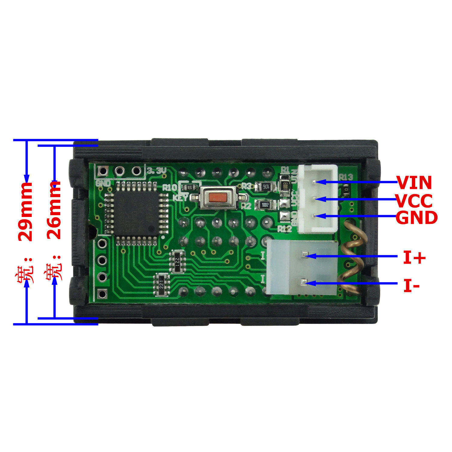 Небольшой объем (48 мм*29 мм*22 мм) цена доступна, а измеритель напряжения с хорошо оборудованной функцией может использоваться только для более чем 10 юаней.