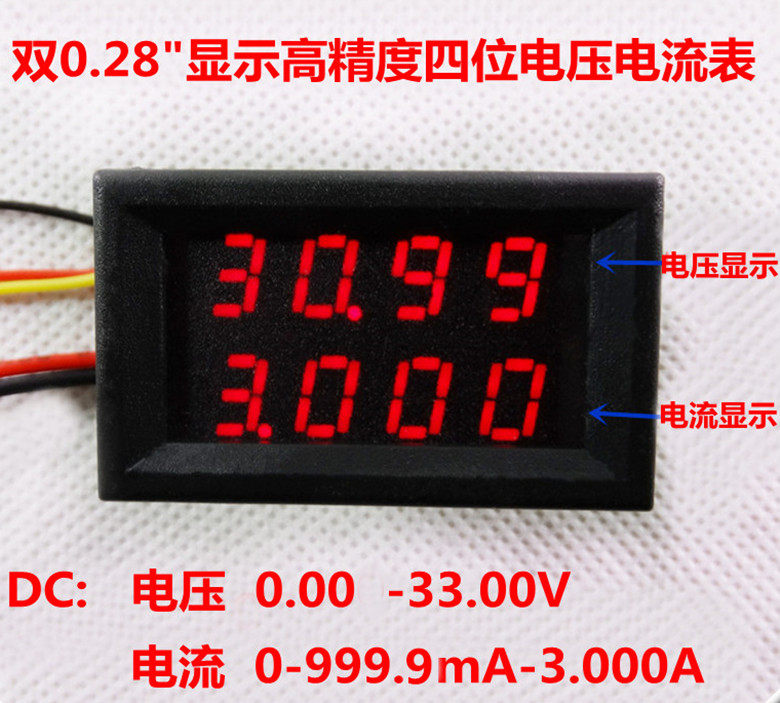 | Напряжение питания: | DC3.5-28V (отрицательный полюс тонкой красной линии положительной и тонкой черной линии) | Режим отображения: | Двойной 4 -бит 0,28 -дюймовой светодиодной цифровой трубки |