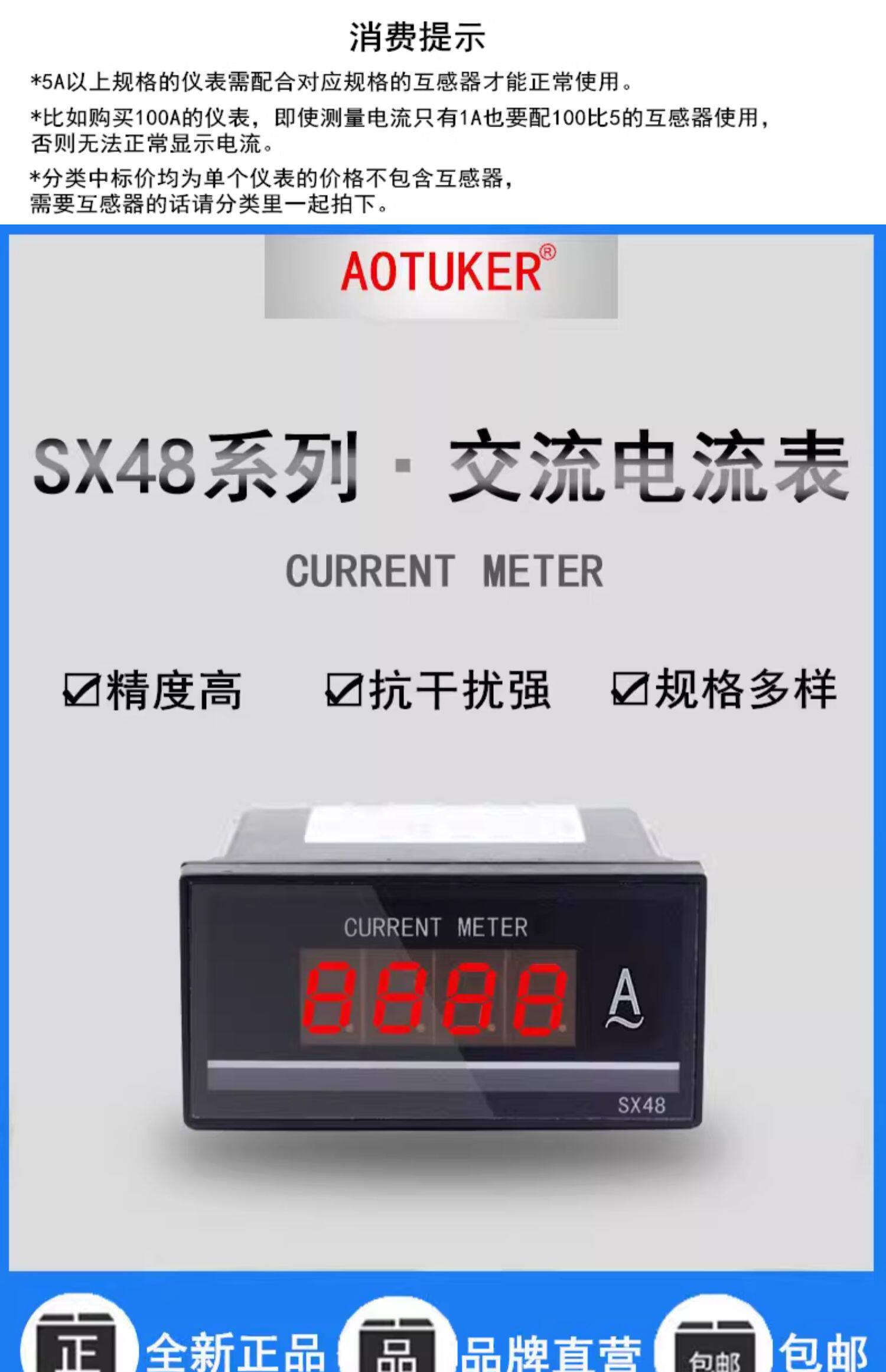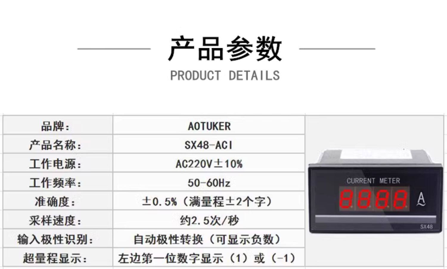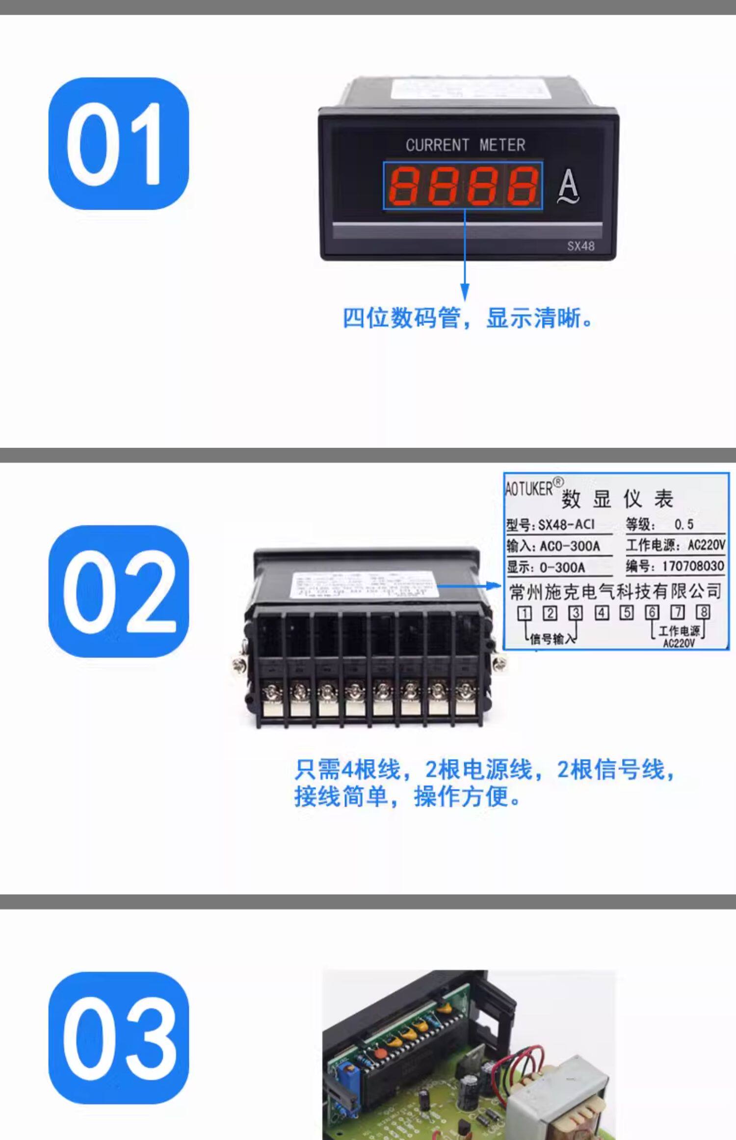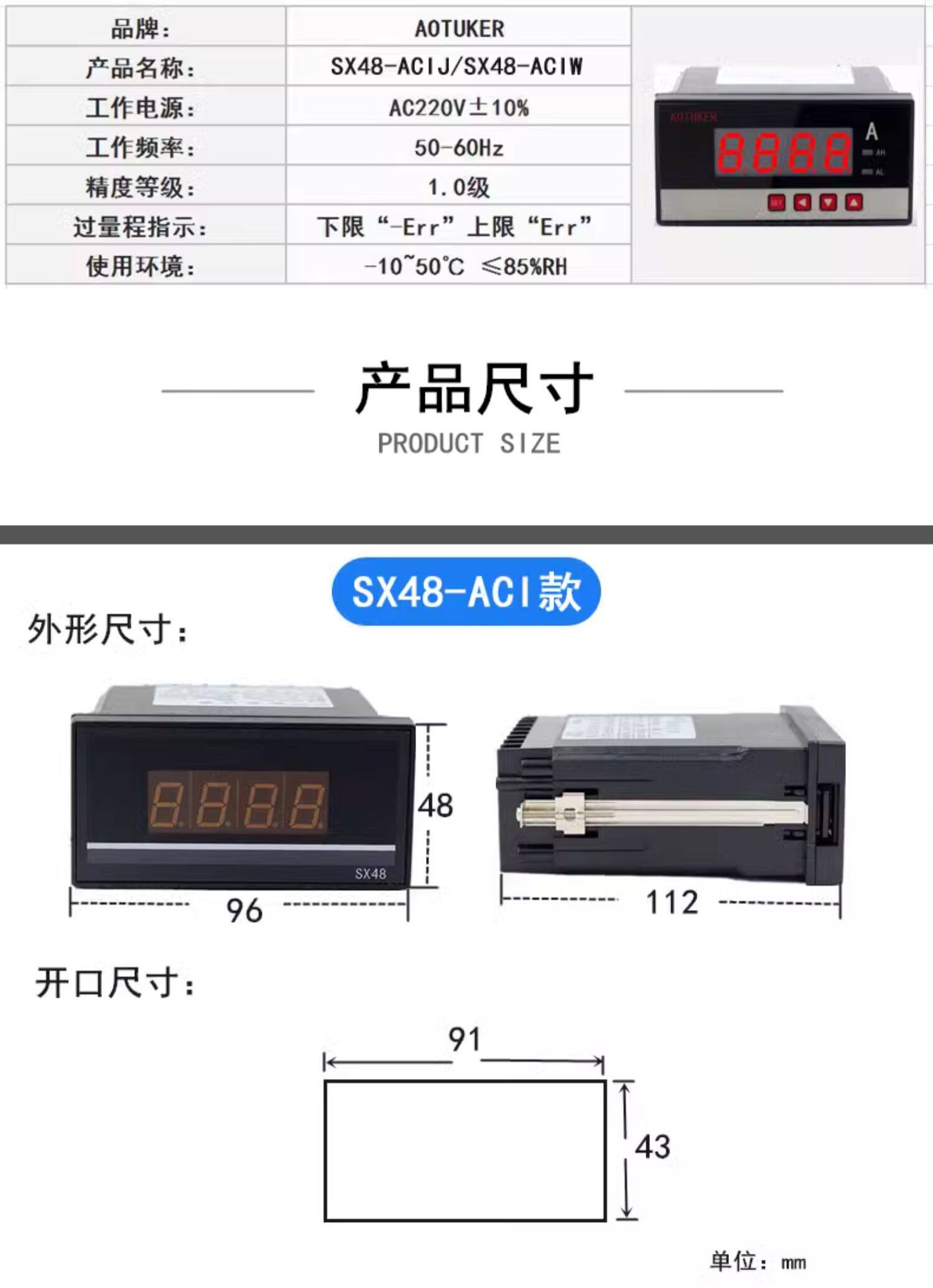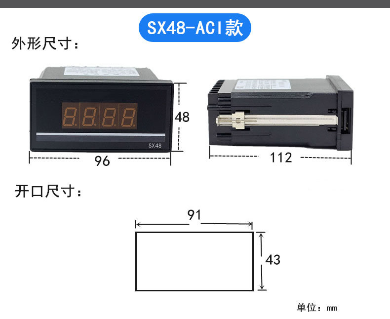 AC800A цифровой дисплей Амперметр переменного тока SX48-ACI прибор промышленного мониторинга