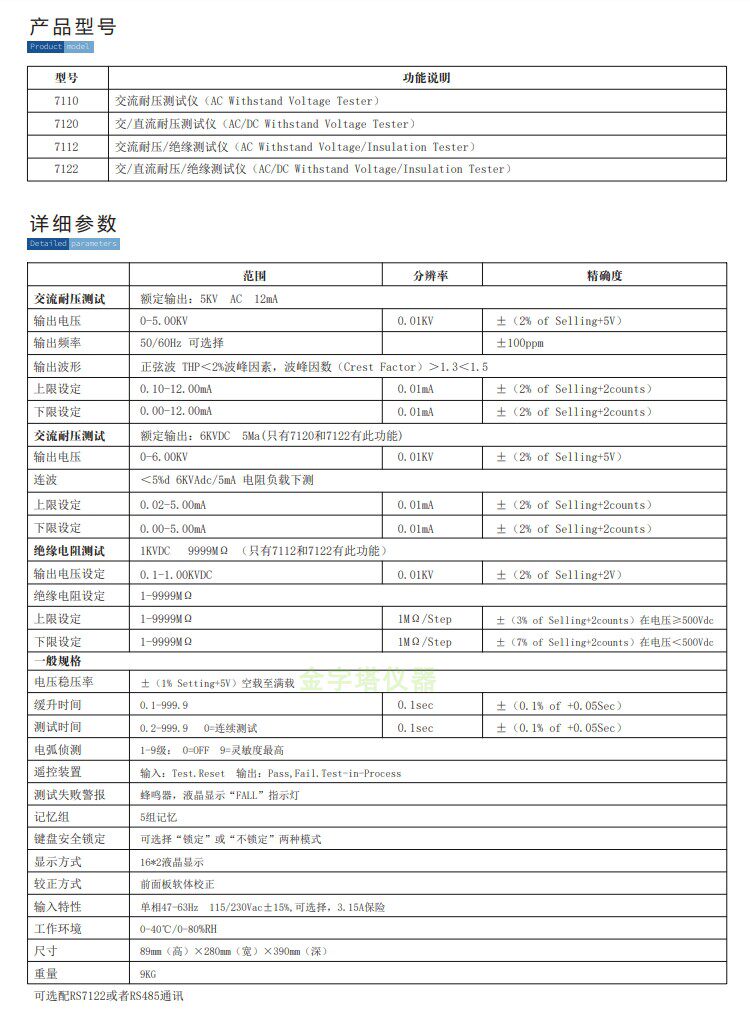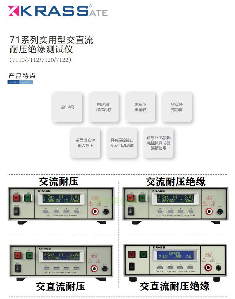 | Цвет: | 7110 Сопротивление связи, 7120 AC Costance DC, 7112 сопротивления переменного тока и изоляция давления, 7122 Exchange DC сопротивление изоляции, 7100 Тестовая линия, 7100 пульт дистанционного управления высоким давлением, Флажок единой функциональной точки, Необязательная конфигурация связи RS232/485 |