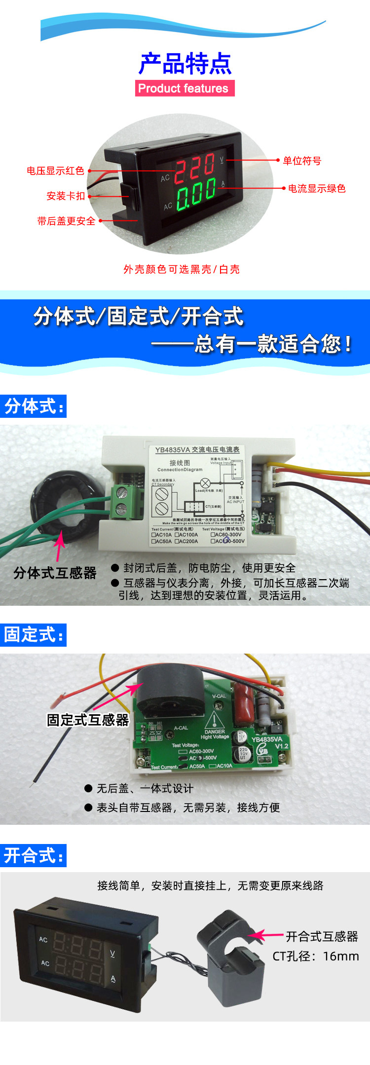 YB4835VA AC0-500V Регулятор давления использует количество измерителя напряжения тока переменного тока можно