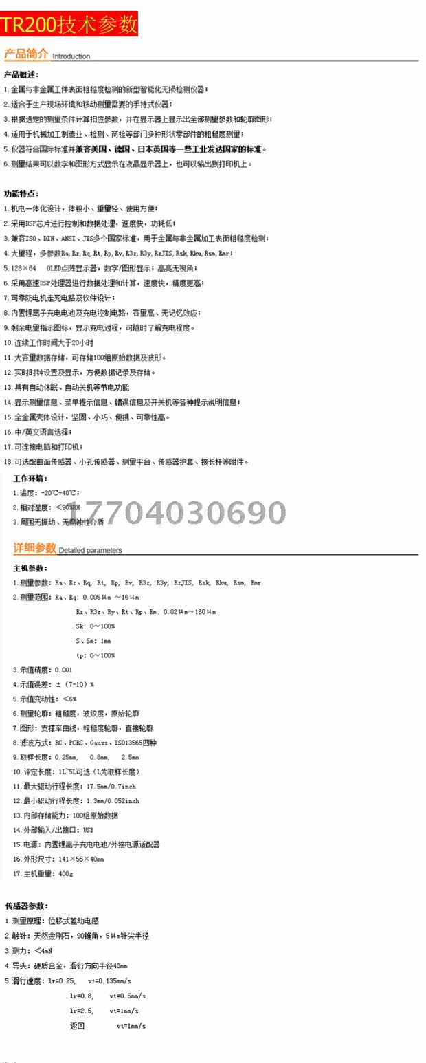 Шероховатость шероховатости Sanfeng TR100 Тестер шероховатости поверхности