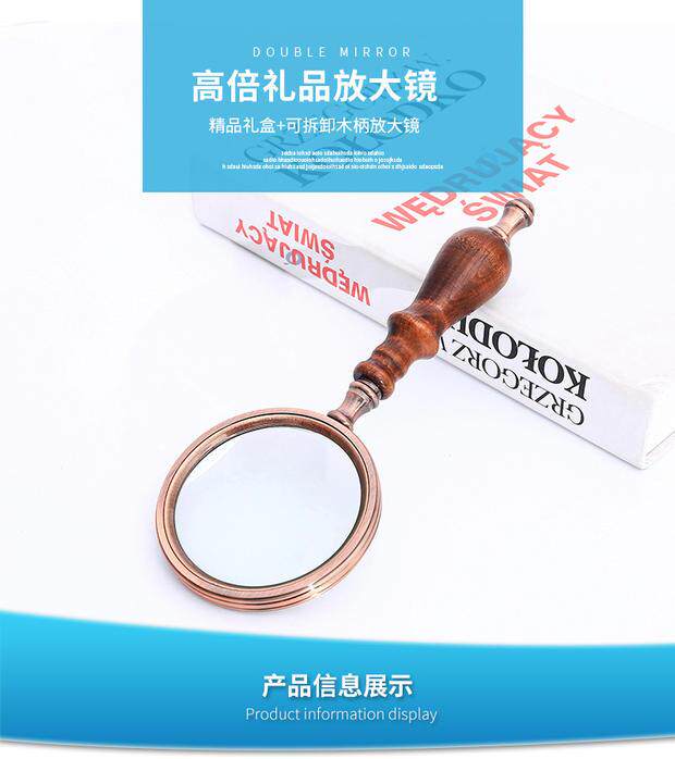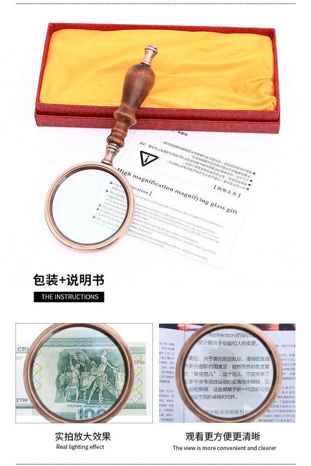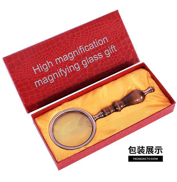 Большое металлическое ретро чтение, портативная стеклянная лупа из черного дерева Эбен из сандалового дерева, увеличение в 10 раз, подарок на день рождения, оптика