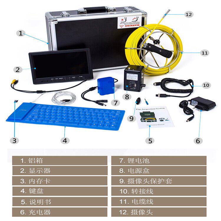 7 -INCH 9 -INCH HIGH -DEFINITION DISPLAITE Клавиатура Записывает промышленную конвейер Эндоскопический детектор канализационной пещеры.