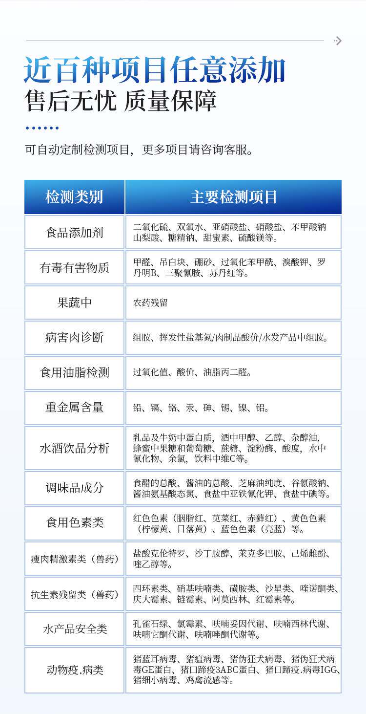| Цвет: | Детектор безопасности пищевых продуктов всего проекта 6 каналов отправляет полный набор аксессуаров, Весь проект детектор по безопасности пищевых продуктов 12 каналов отправляют полный набор аксессуаров, Детектор безопасности пищевых продуктов во всем проекте 18 каналов отправляет полный набор аксессуаров, Детекторы безопасности пищевых продуктов для всех проектов 24 канала, отправьте полный набор аксессуаров, Детектор по овощам и фруктам и остаткам пестицидов, чтобы отправить полный набор аксессуаров, Модели с детектором фруктов и овощного мяса-это полный набор аксессуаров, Комплексный детектор мяса отправил полный набор аксессуаров, Модели с детектором фруктов и овощного мясного мяса будут отправлять полный набор аксессуаров, Портативные металлические аксессуары, полный комплект, Качественные безопасные комплексные аксессуары, полный комплект, Съедобной нефть Комплексный детектор для отправки полного набора аксессуаров, Дайте полный набор аксессуаров для детектора грибковых токсинов, Ветеринарный детектор остатков наркотиков для отправки полного набора аксессуаров, Детектор остатков лекарств для яиц Отправить 30 тестовых карт, Быстрый детектор безопасности меда, Детектор остатков пестицидов карточного типа поставляется с 40 тестовыми картами., Умный 6-канальный инструмент остатков пестицидов + полный набор аксессуаров, 300 реагентов отправляются, Умный 8-канальный инструмент остатков пестицидов + полный набор аксессуаров, 300 реагентов отправляются, Умный 10-канальный инструмент остатков пестицидов + полный набор аксессуаров, 300 реагентов отправляются, Умный 12-канальный измеритель остатков пестицидов + полный набор аксессуаров, 300 бесплатных реагентов, Сельскохозяйственный остаточный реагент 100 раз, Реагент остатков NONG 200 раз, Реагент для остатков пестицидов 300 раз, 500 сельскохозяйственных остатков реагентов, Klndelo Тестовая карта Гидрохлорид 20 штук/коробка, Карта обнаружения дофамина озера 20 20 штук/коробка, Двадцать -точка/коробка карты обнаружения скелетного гликоля, Кленбутерол гидрохлорид/рактопамин/альбутерол, всего 20 полосок |