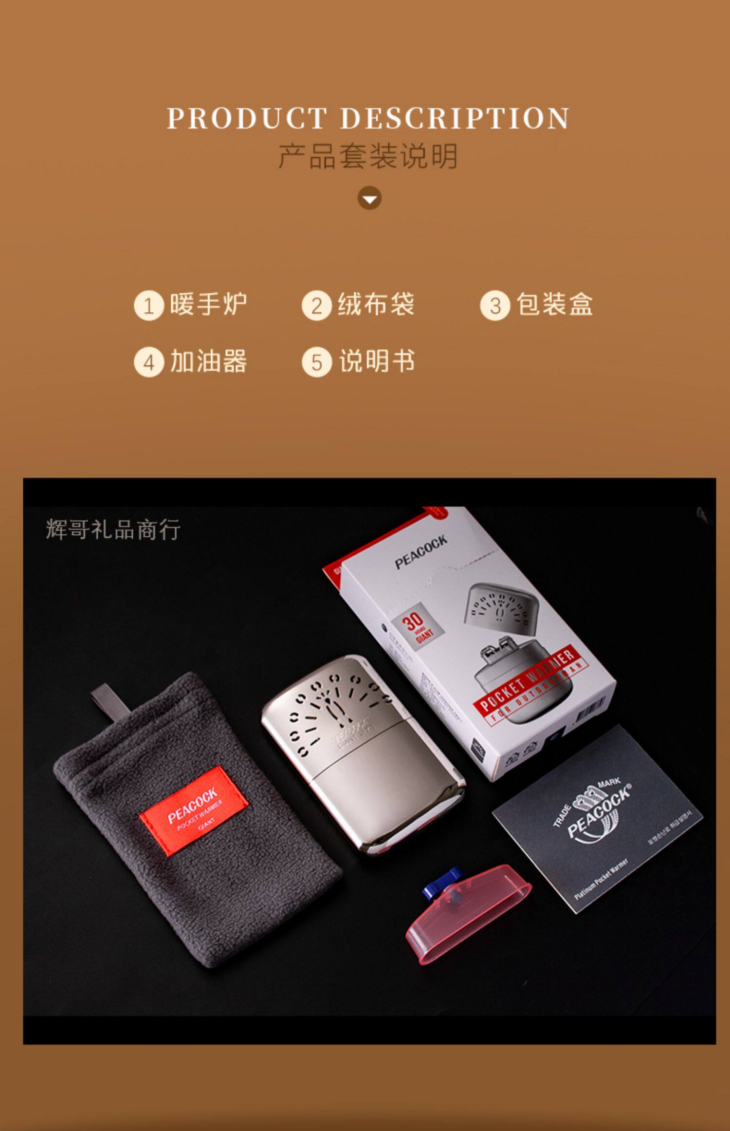 Медная сельская грелка для рук, Южная Корея, павлин, японская версия